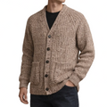 Design: Traditional chunky knit construction with a deep V-neckline and classic button-through front for a timeless finish