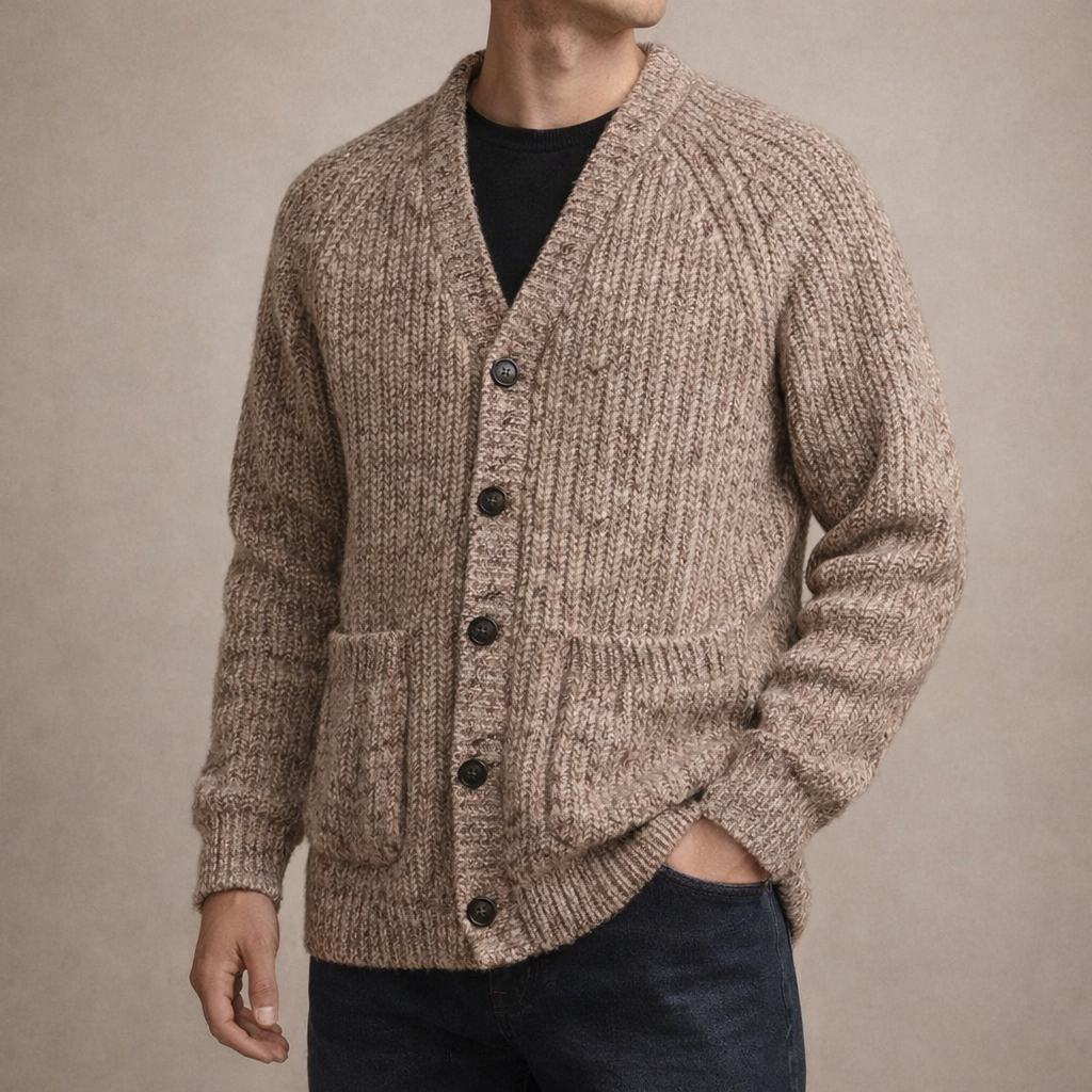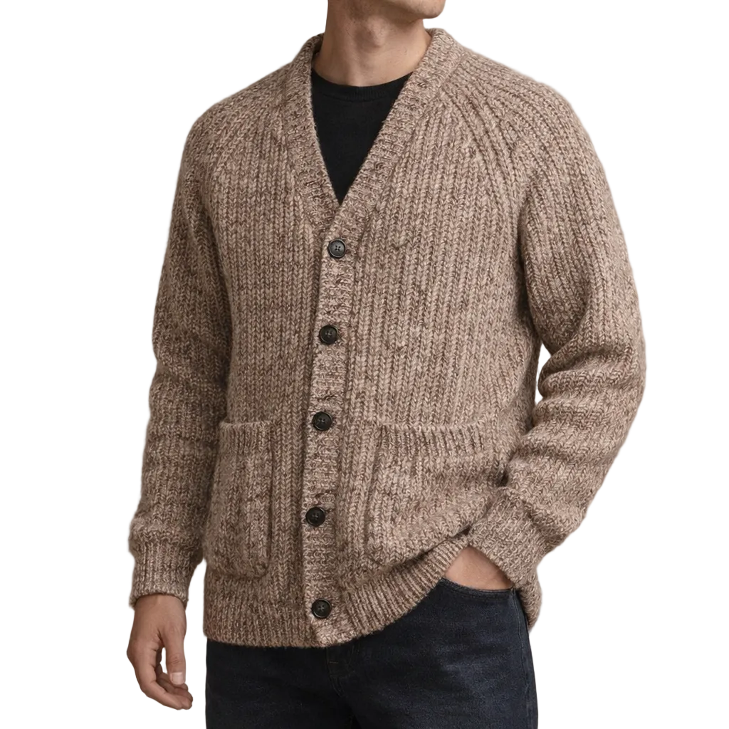 Men’s Chunky Knit Button Through Cardigan with Patch Pockets