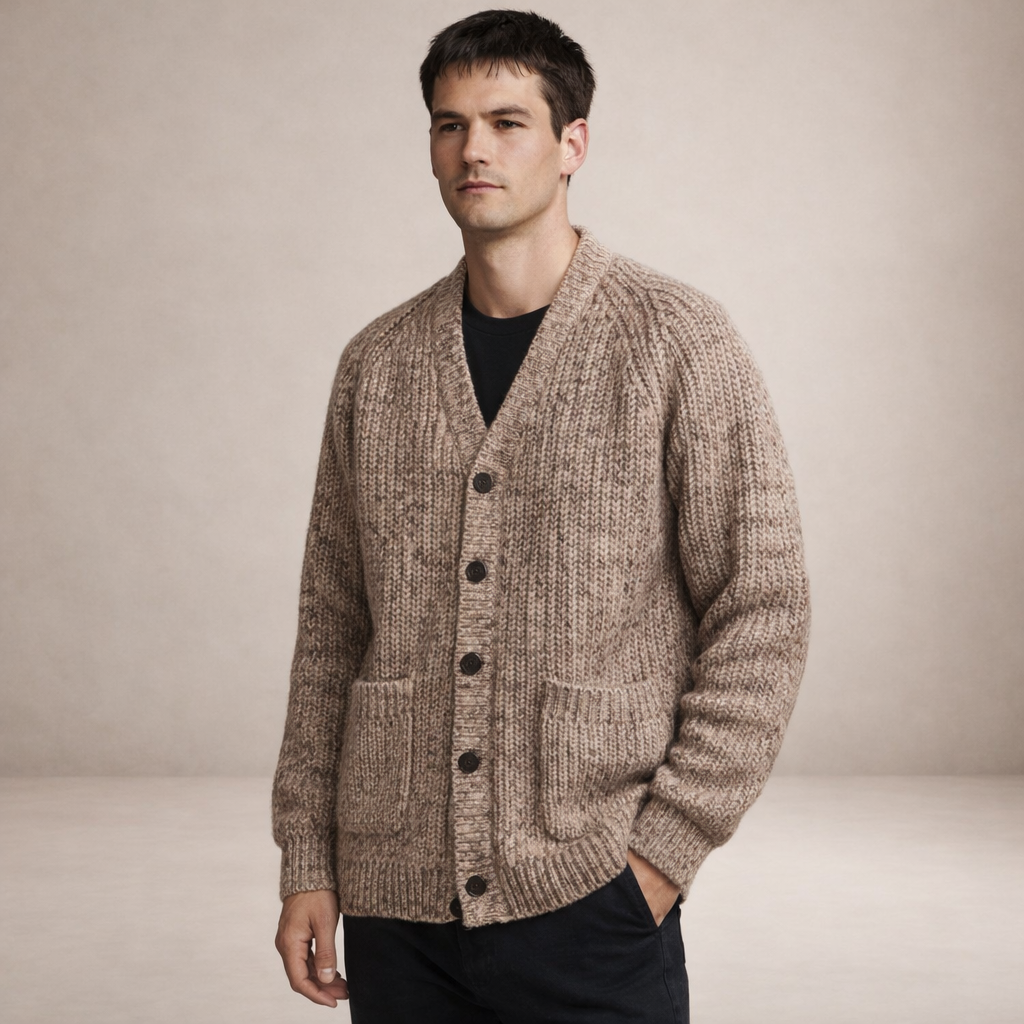 Warm, textured and effortlessly timeless, this Men’s Chunky Knit Button Cardigan is a refined layer for cooler seasons. The substantial knit and classic silhouette create a relaxed yet considered look, ideal for everyday wear. Designed for comfort and versatility, it pairs seamlessly with both casual and smart-casual outfits.