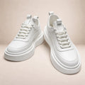 Sleek and contemporary, these White Chunky Sole Trainers bring a modern update to everyday footwear. The clean all-white finish and sculpted platform sole create a confident yet versatile look, ideal for casual styling with a refined edge. Perfect for weekend wear, city outings or elevating relaxed ensembles, they combine comfort with understated impact.