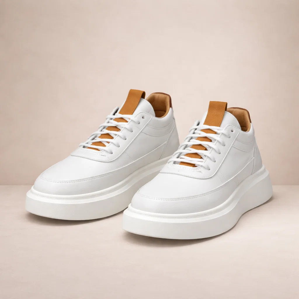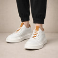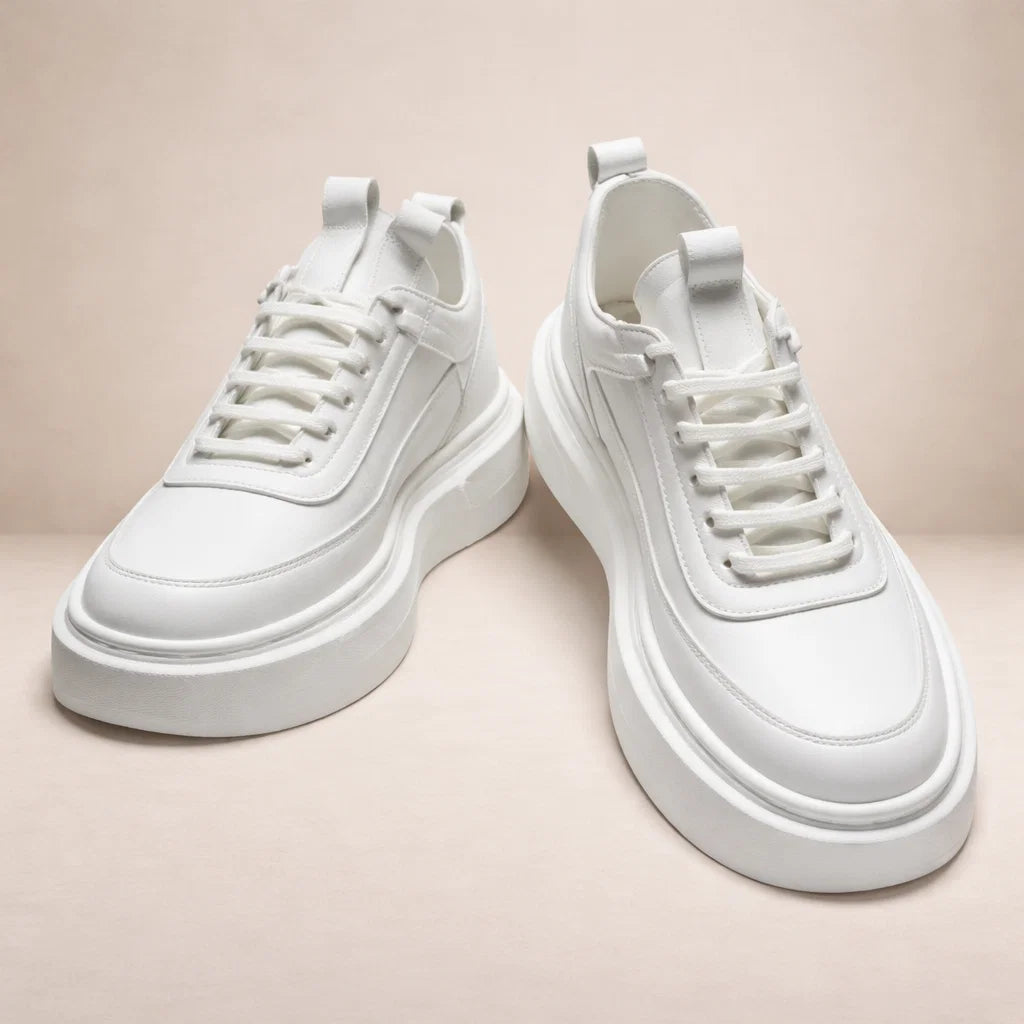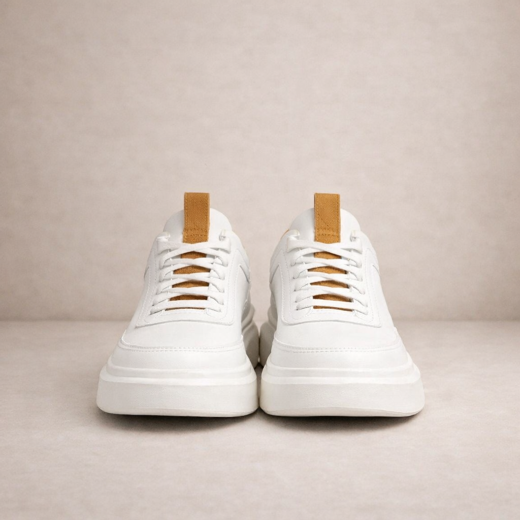 Design: Minimal low-top silhouette in a crisp white tone, enhanced by subtle panel detailing and tonal stitching for a polished finish