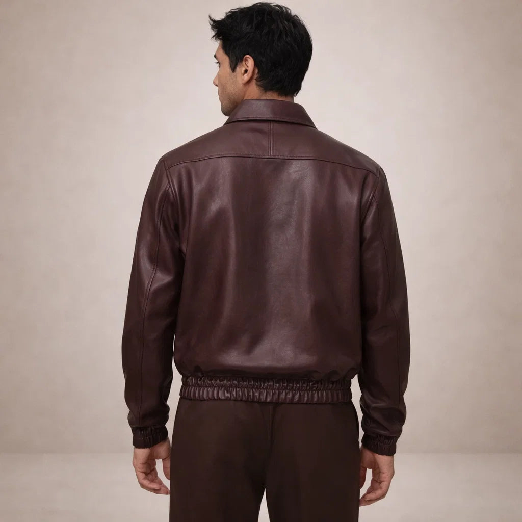 Men’s Classic Brown Leather Zip Jacket