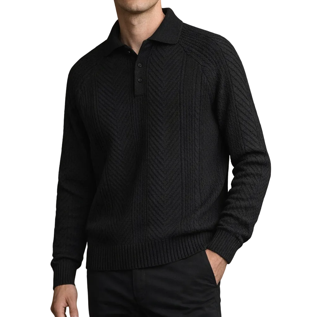 Design: Textured knitted pattern with a traditional polo collar and button placket for a polished finish
