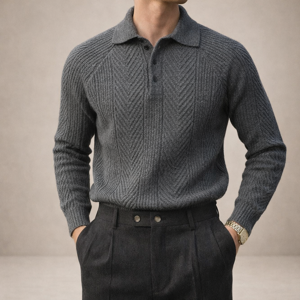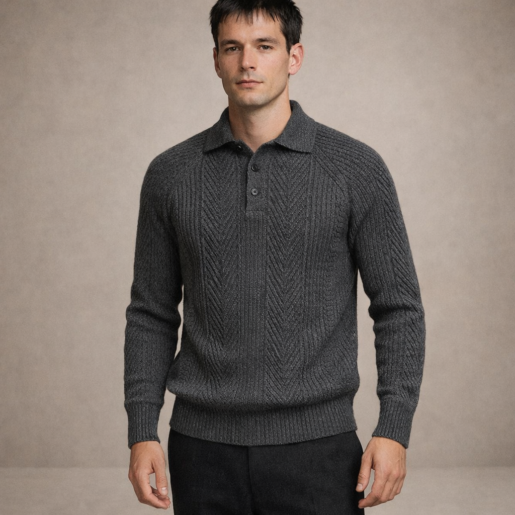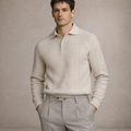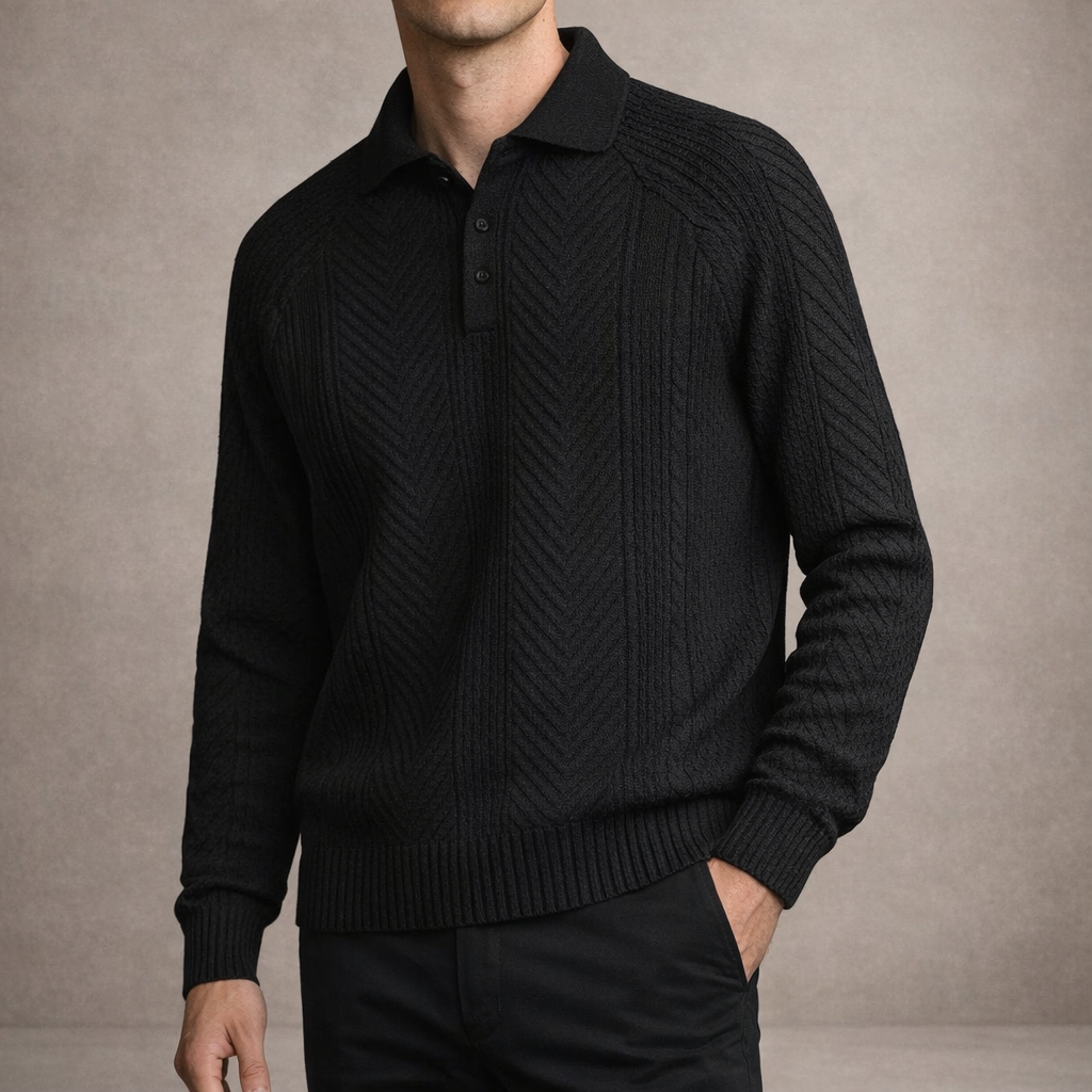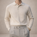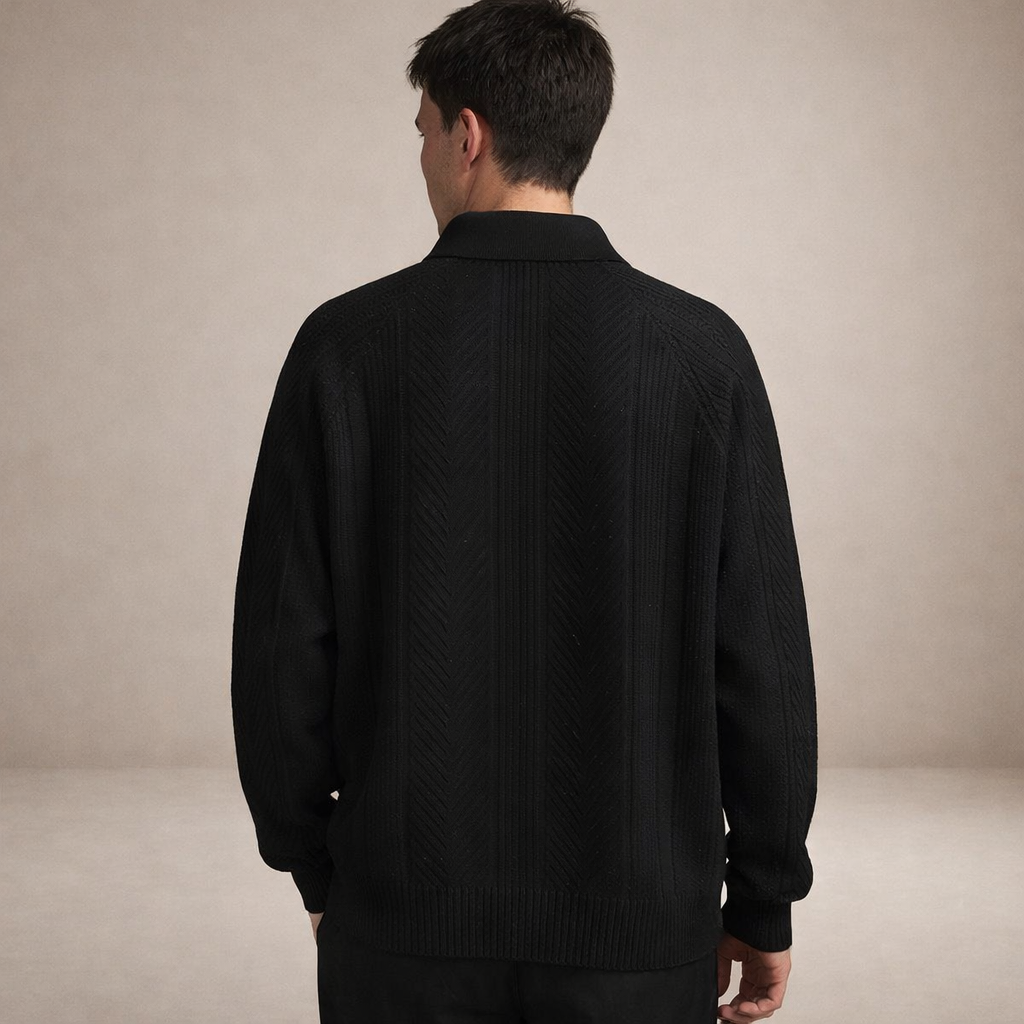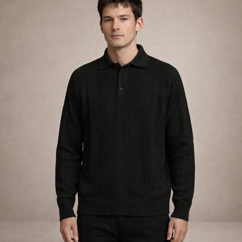 Refined, versatile and effortlessly smart, this Men’s Knitted Polo Sweater delivers classic style with a modern edge. The structured knit pattern and timeless polo collar make it an ideal choice for both casual and smart-casual settings.