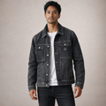 Design: A classic denim jacket silhouette with a structured collar and button-up front for a refined, laid-back finish.
