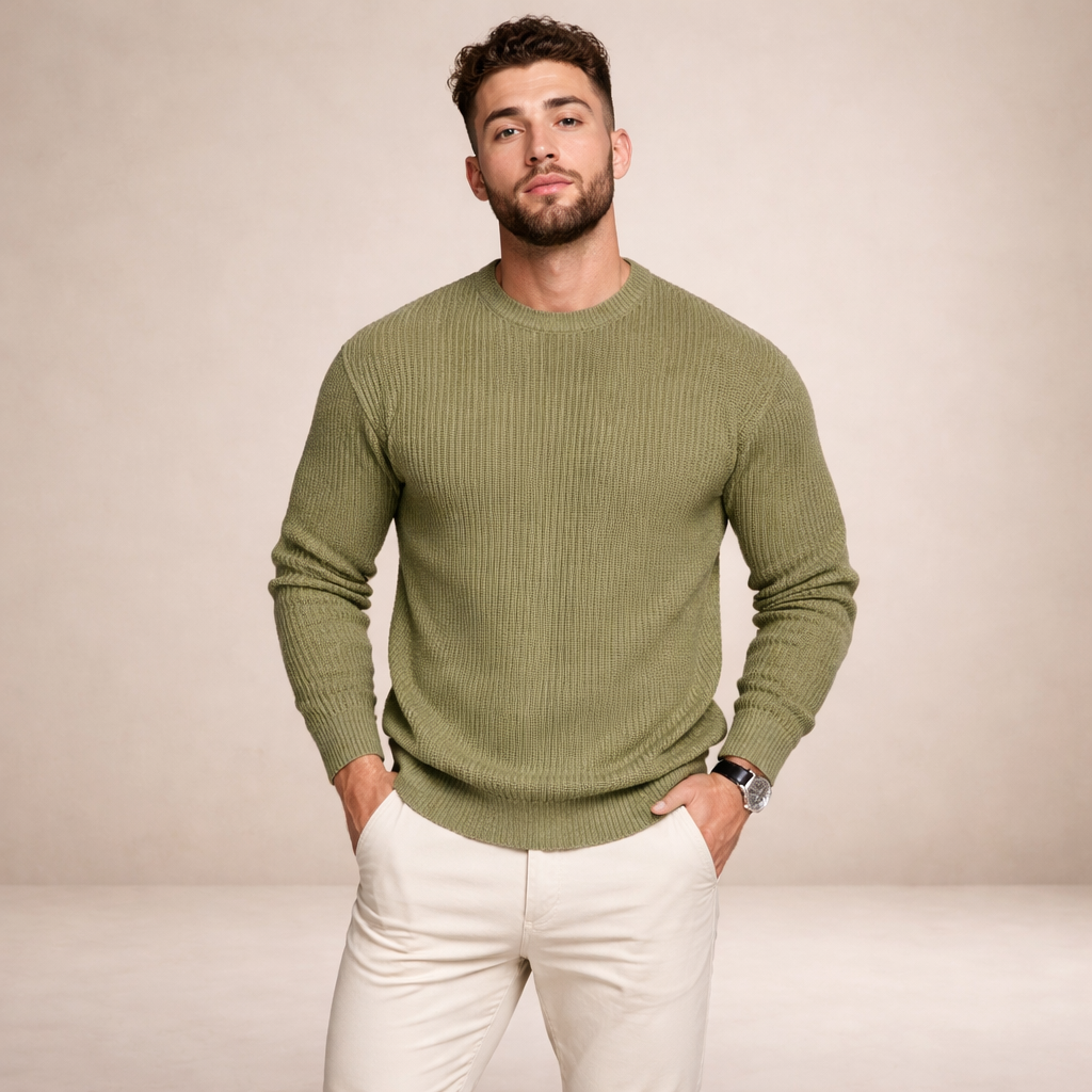 Men’s Classic Ribbed Crew Neck Knit Sweater