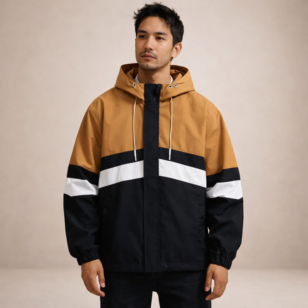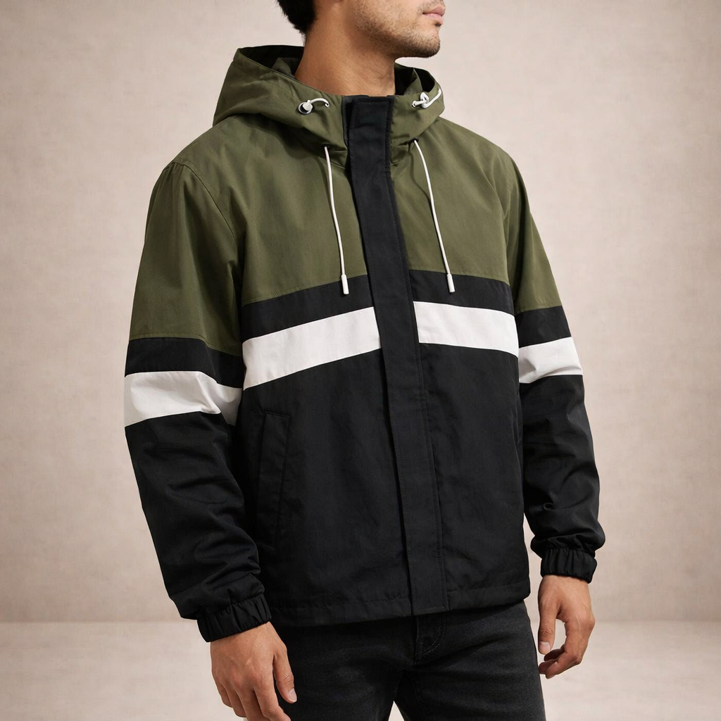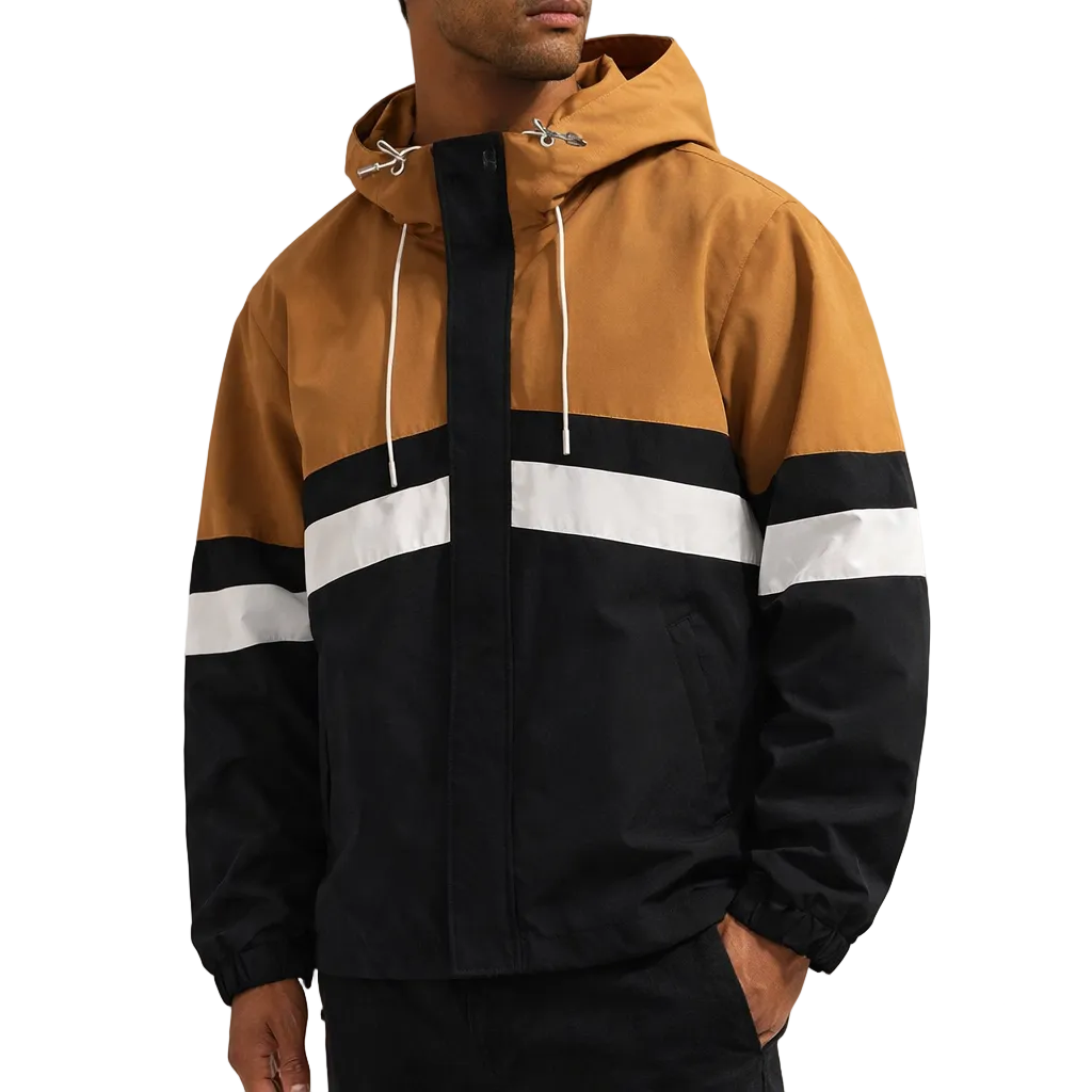 Men’s Colour Block Hooded Jacket with Zip Closure