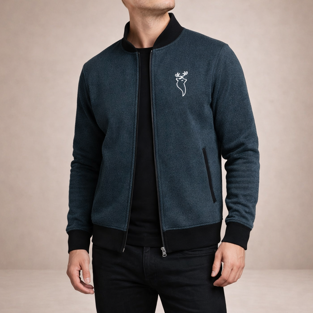 Details: Ribbed trims and contrast pocket accents add subtle depth, complemented by a neatly embroidered chest motif