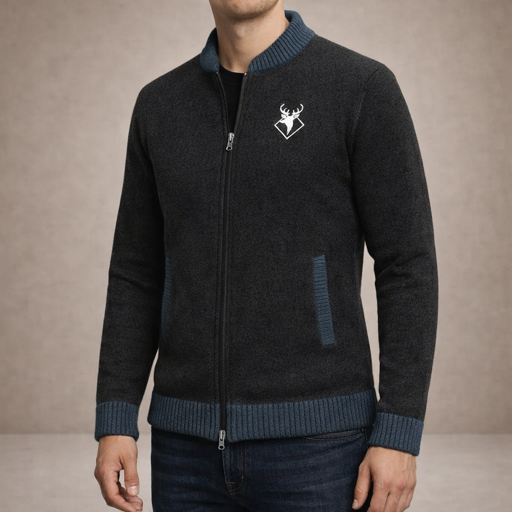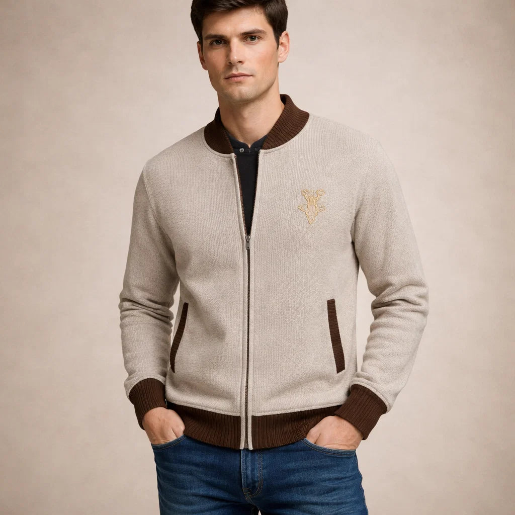 Men’s Contrast Trim Zip-Up Knit Cardigan