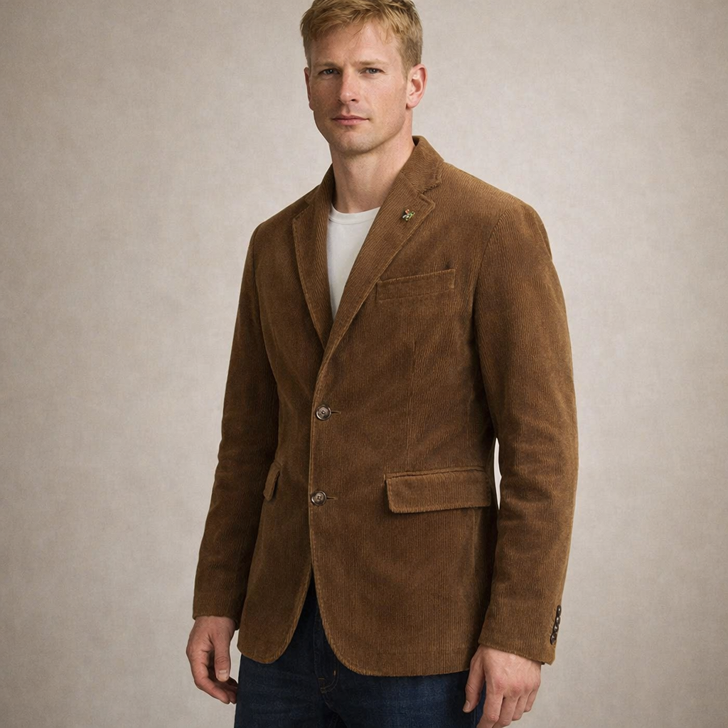 Men’s Corduroy Blazer with Tailored Fit and Notch Lapel