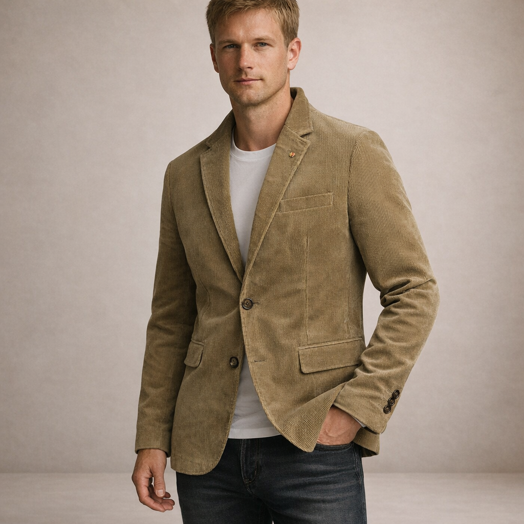 This men’s corduroy blazer offers a refined yet relaxed look, combining classic tailoring with a soft, textured finish. Perfect for smart-casual occasions, it transitions effortlessly from daytime wear to more polished evening settings.