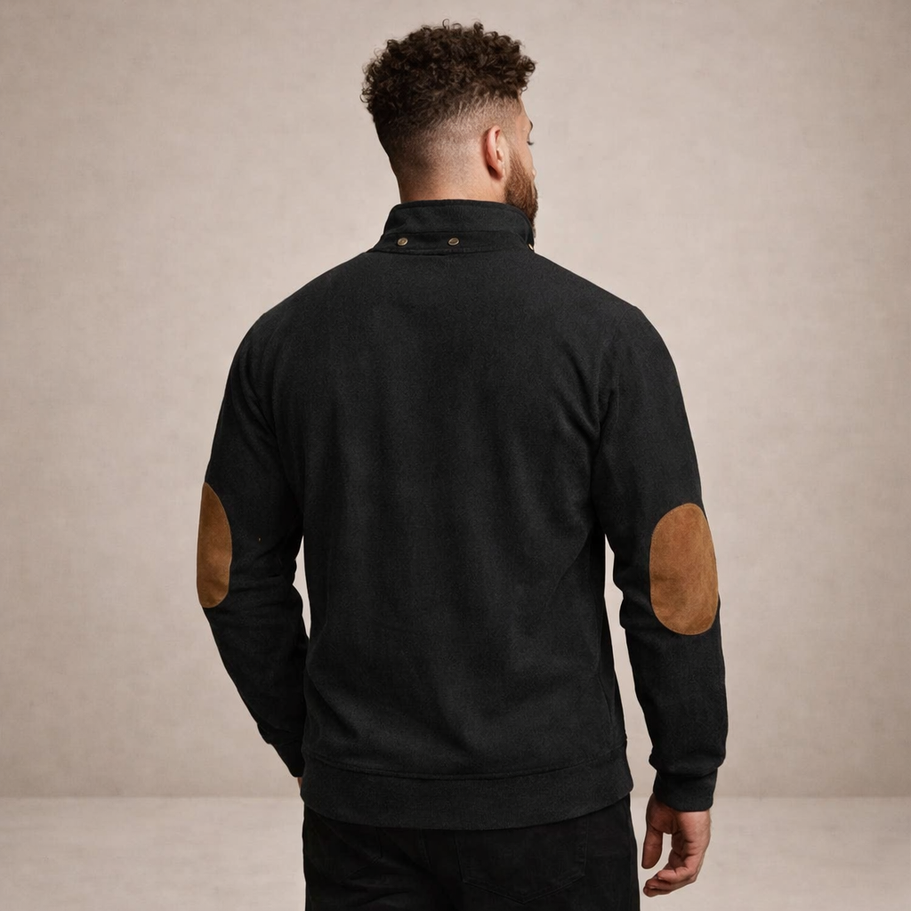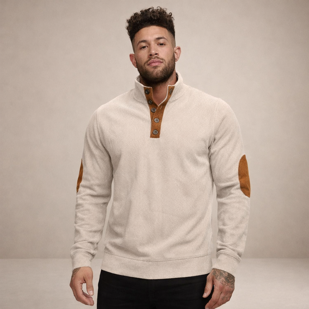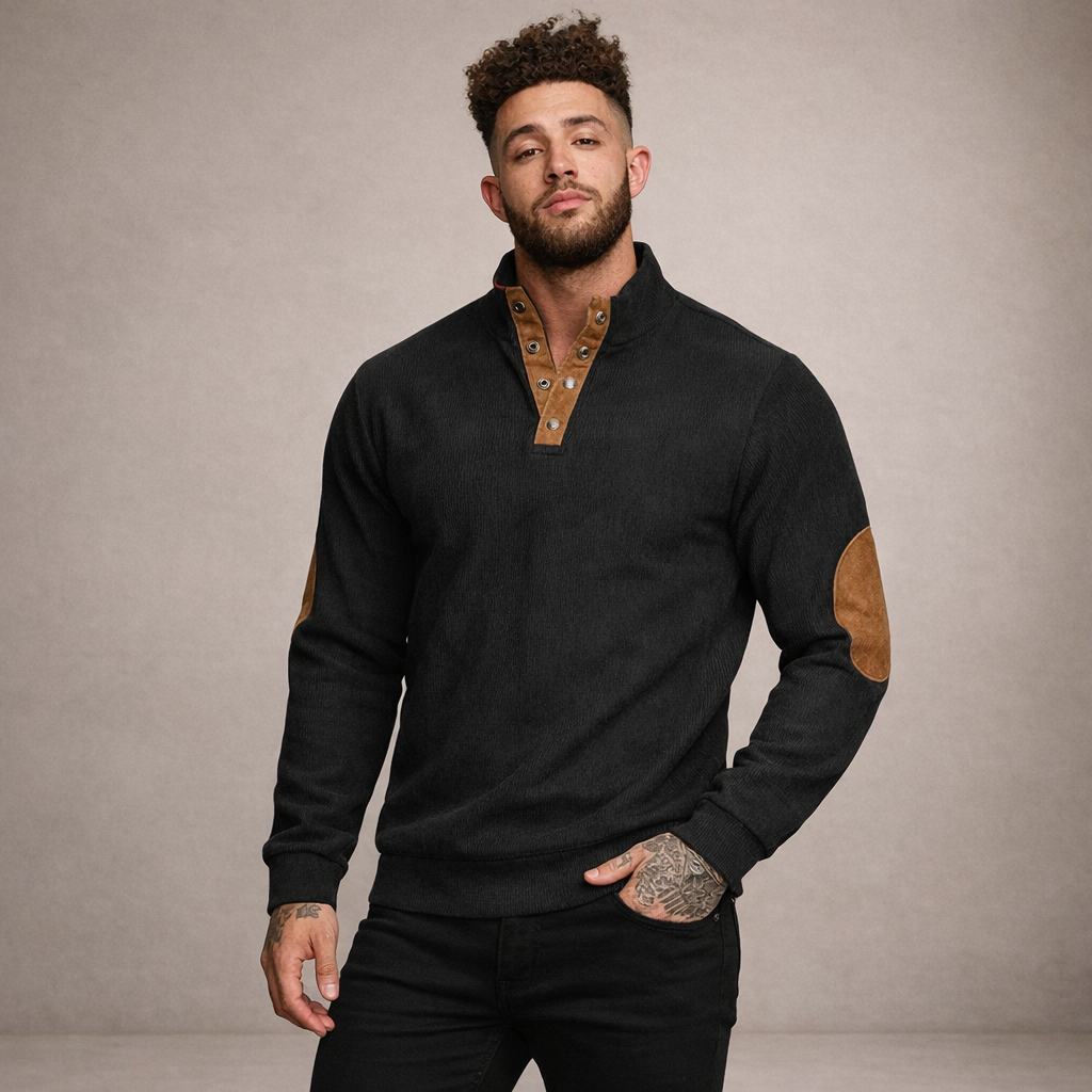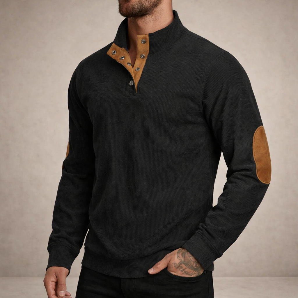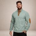 Men’s Corduroy Pullover with Button Neck and Elbow Patches
