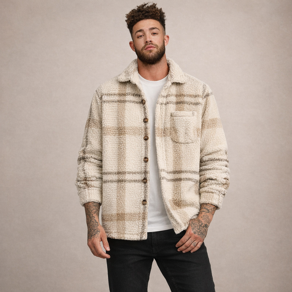 Men’s Cream Check Sherpa Shirt Jacket
