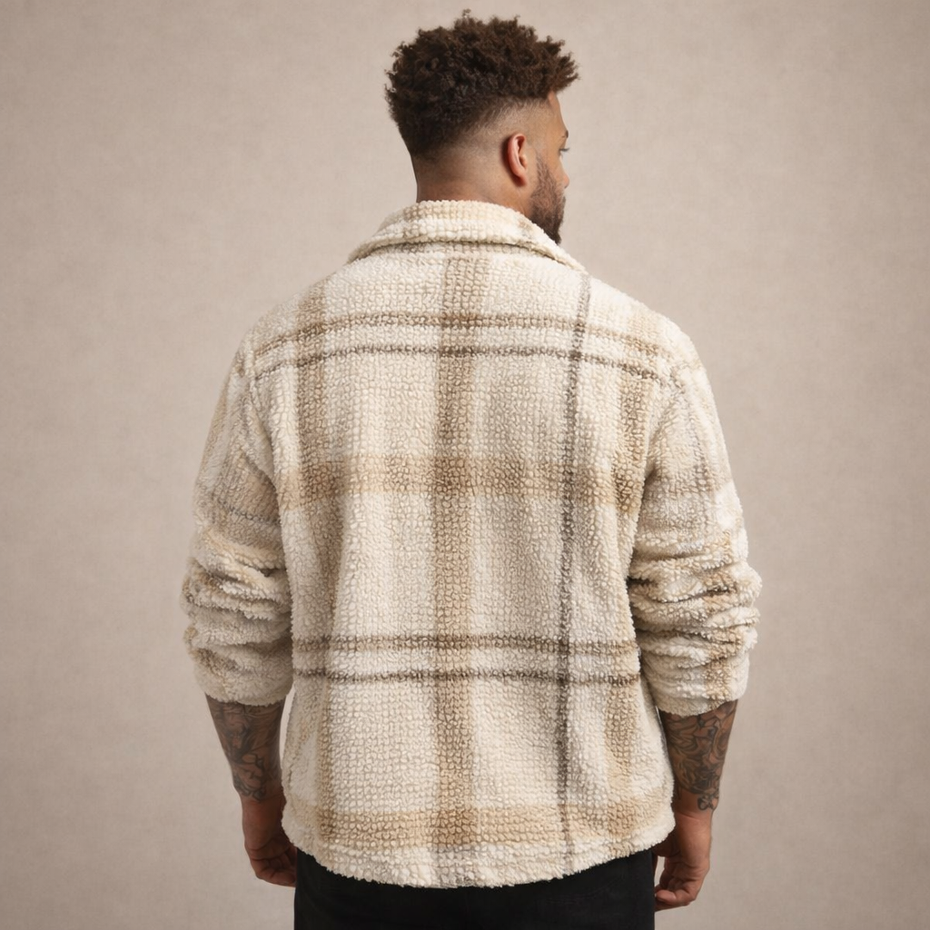 Design: Classic check pattern with a soft sherpa-style texture for a casual, outdoors-inspired aesthetic