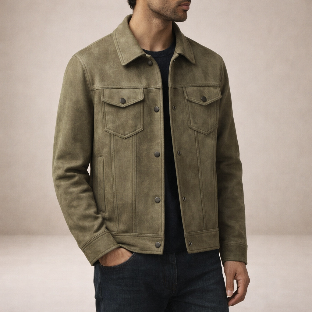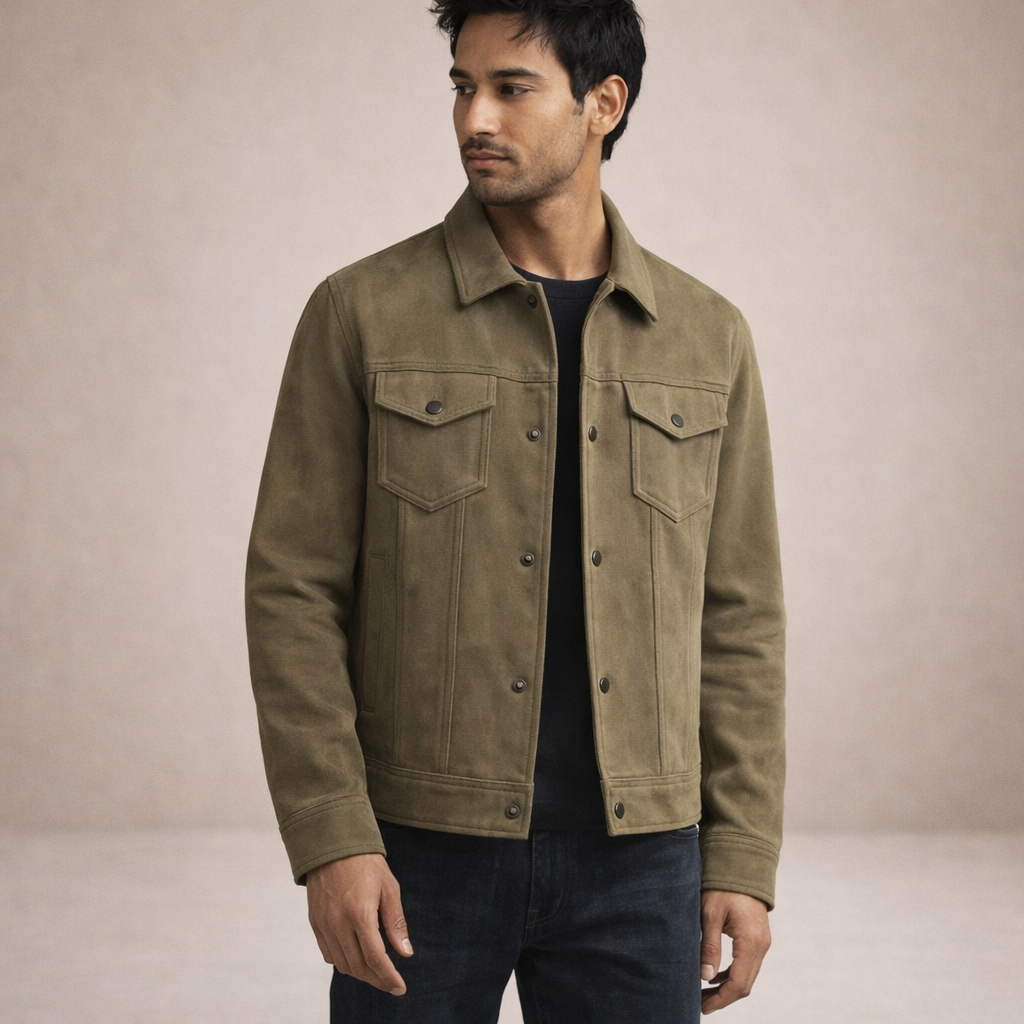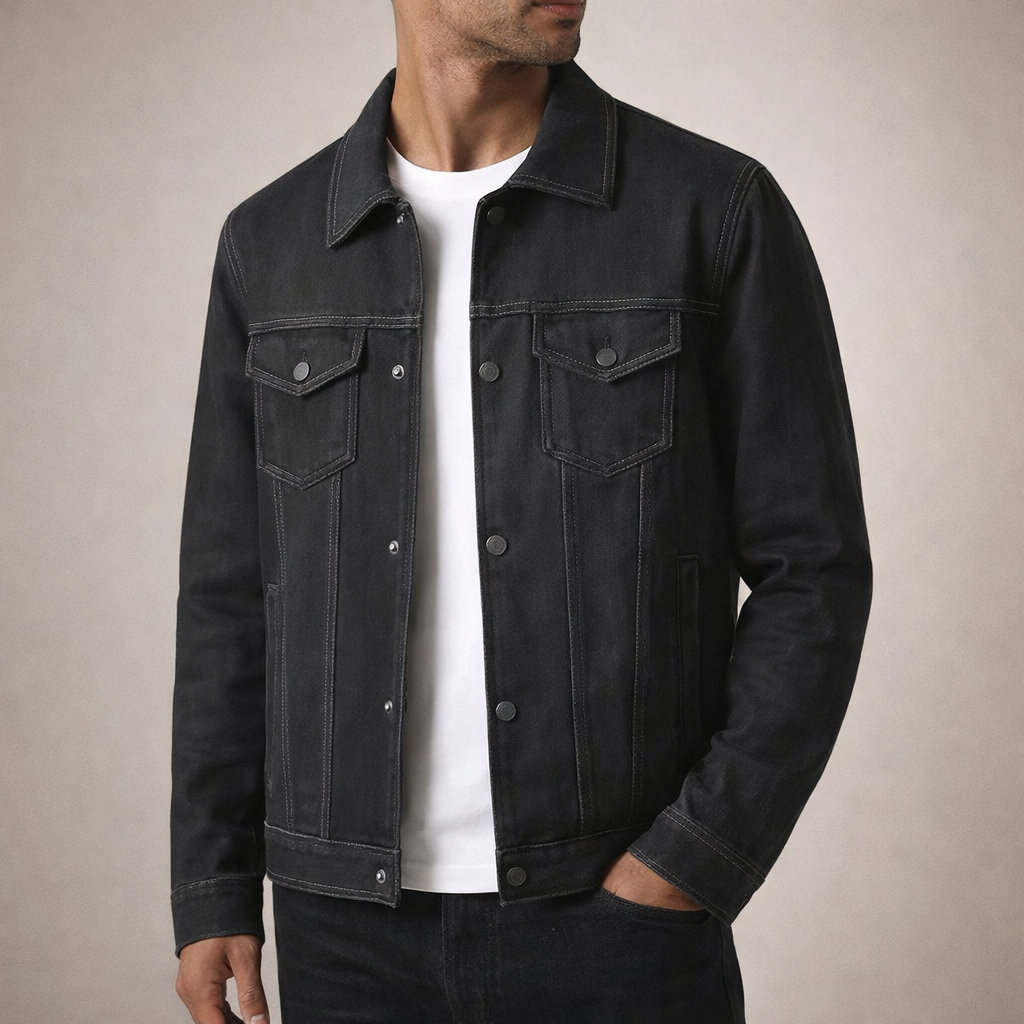 Men’s Denim Jacket with Button Front and Chest Pockets