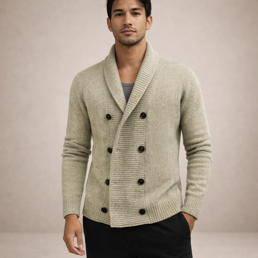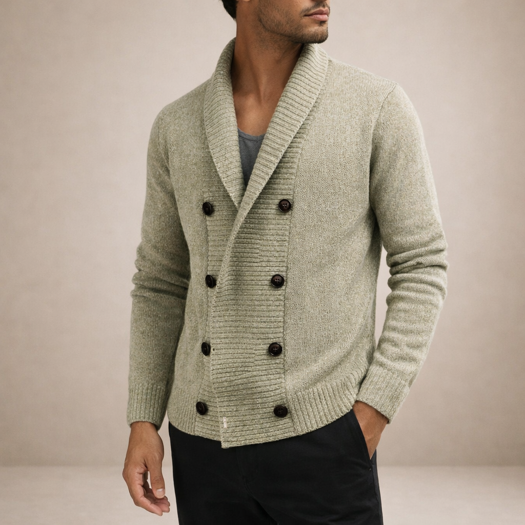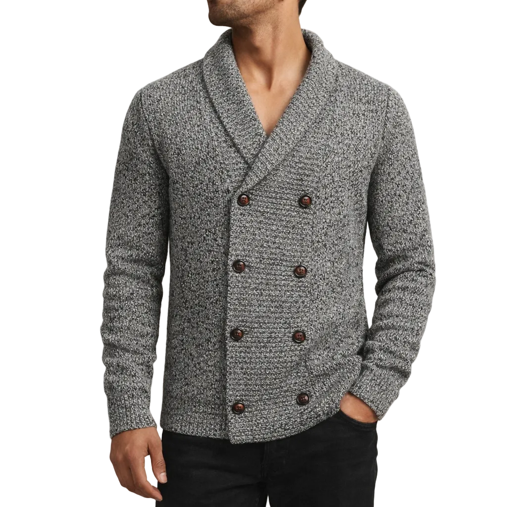 Men’s Double-Breasted Knit Cardigan with Shawl Collar