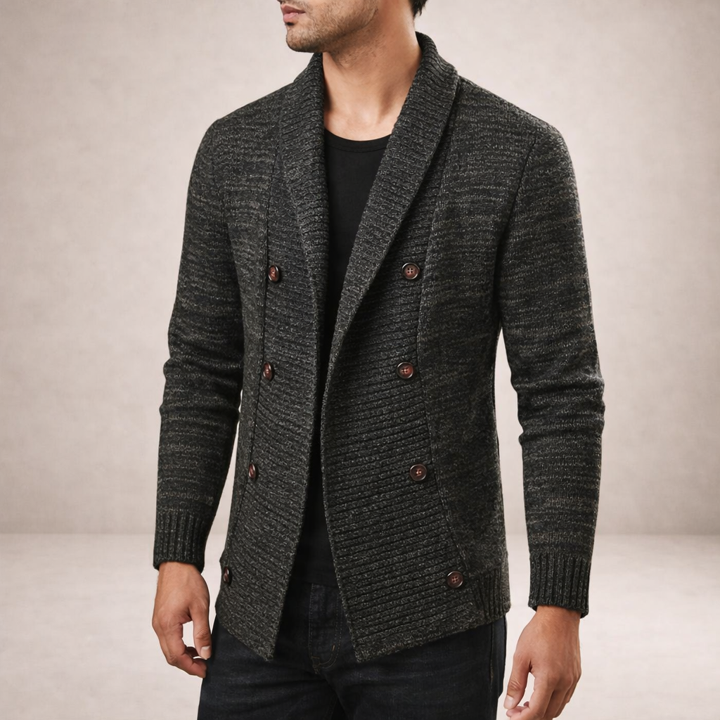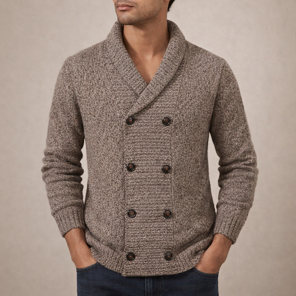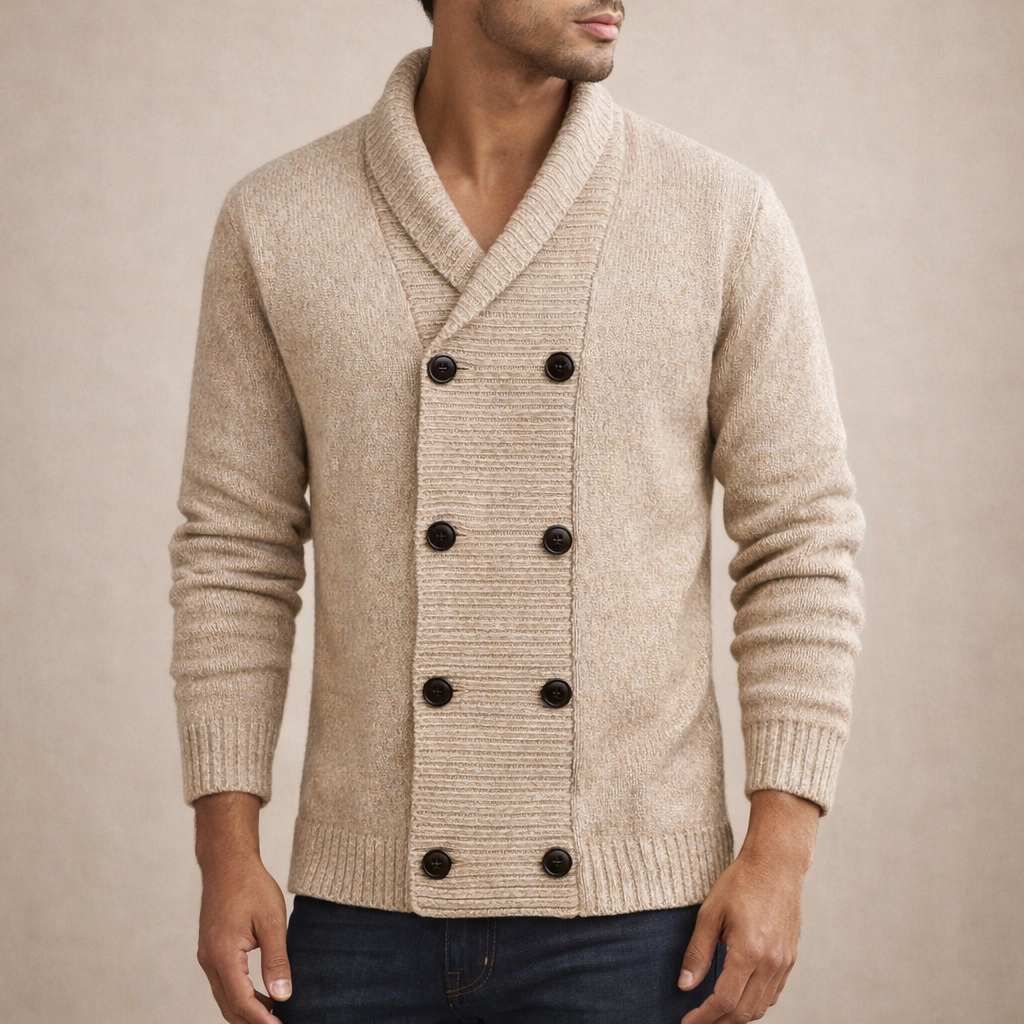 Men’s Double-Breasted Knit Cardigan with Shawl Collar