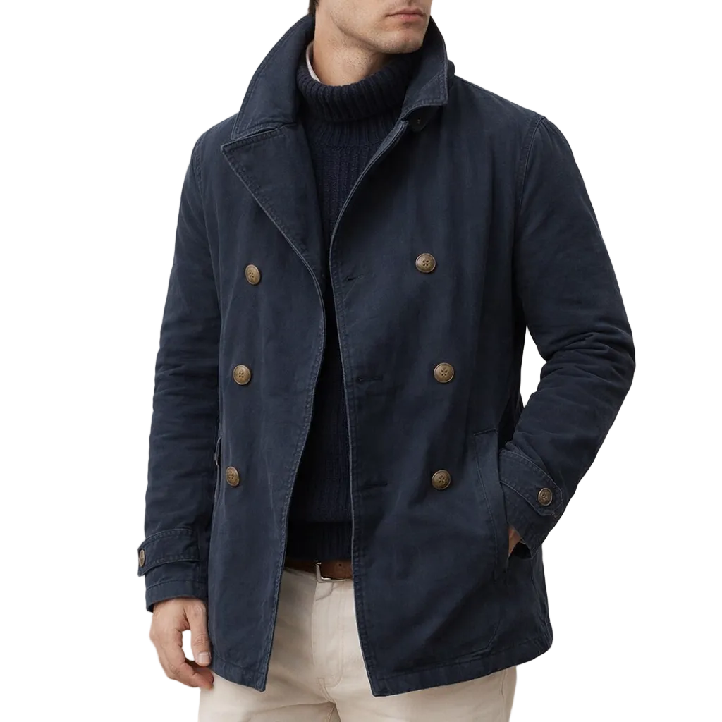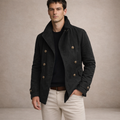 Men’s Double-Breasted Pea Coat with Stand Collar