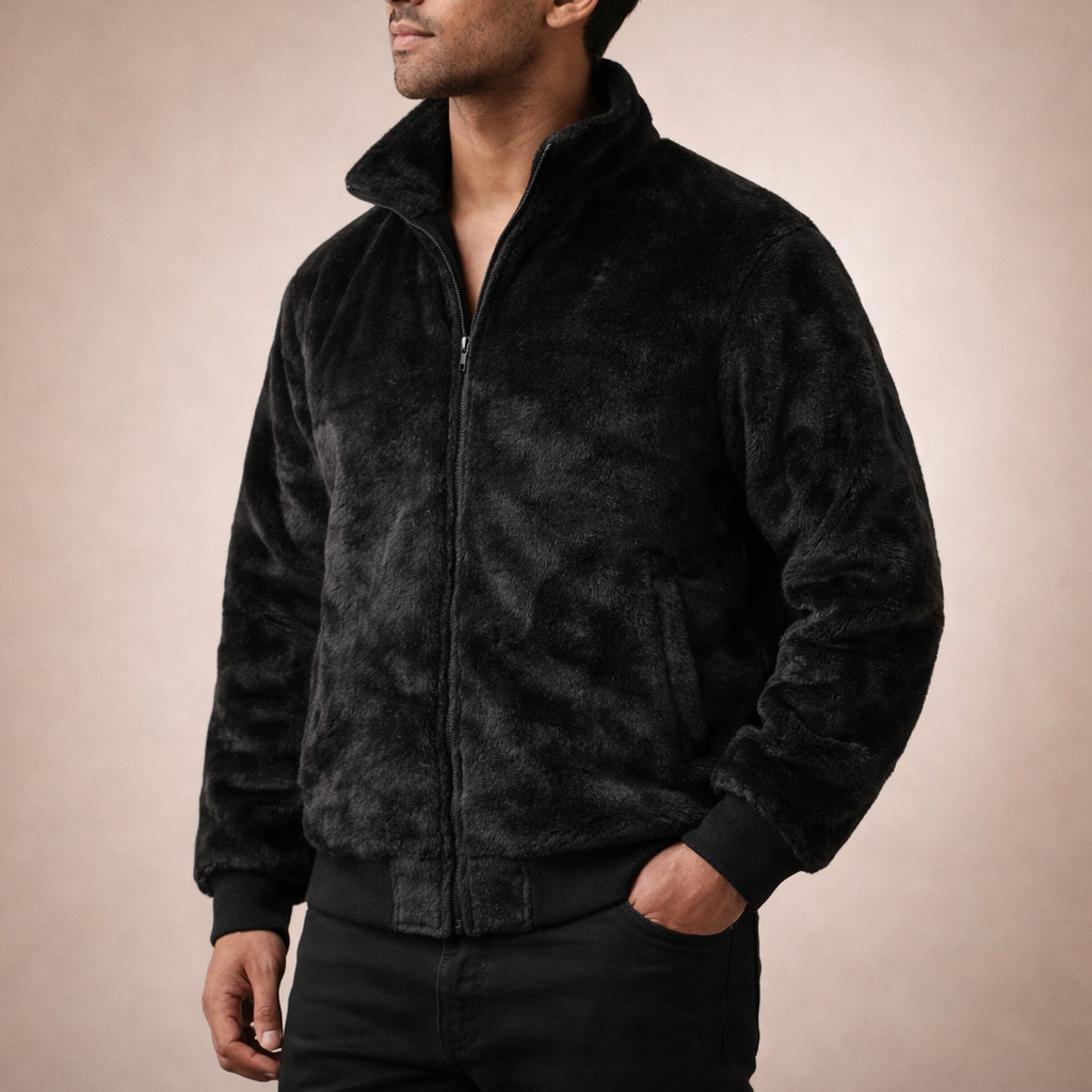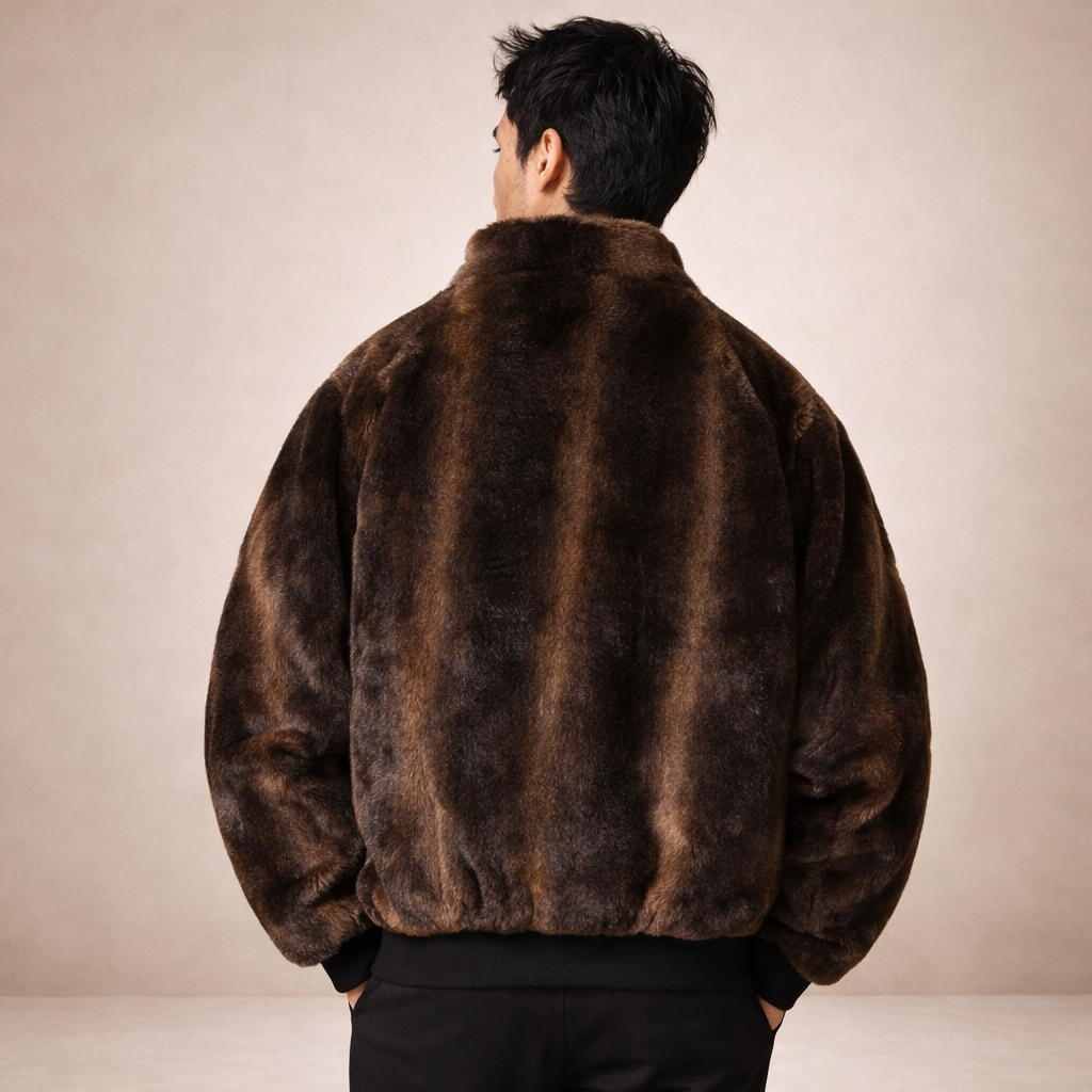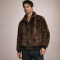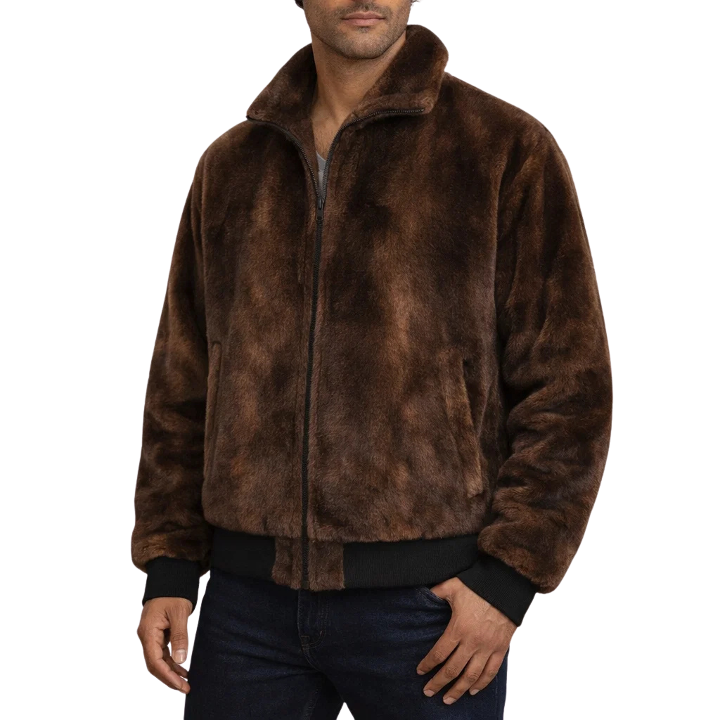 Men’s Faux Fur Zip-Front Jacket with Ribbed Hem