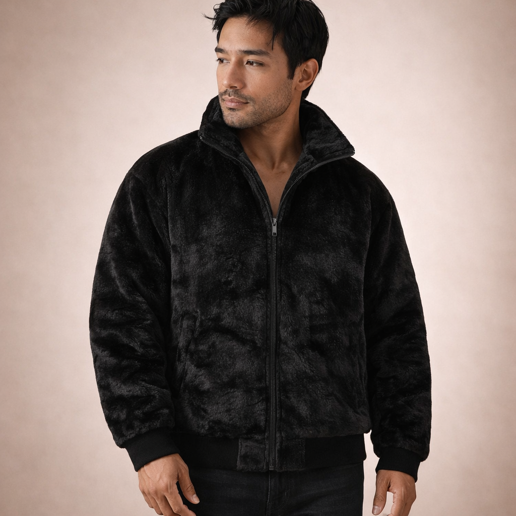 This men’s faux fur jacket brings a bold yet refined statement to cold-weather dressing. Designed to provide warmth and visual impact, it combines a plush texture with a clean, modern silhouette suitable for both casual evenings and elevated everyday wear.