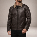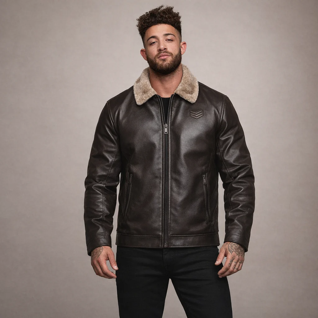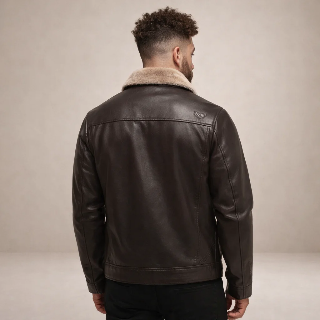 Key features of this Men’s Leather Jacket with Fleece Collar
