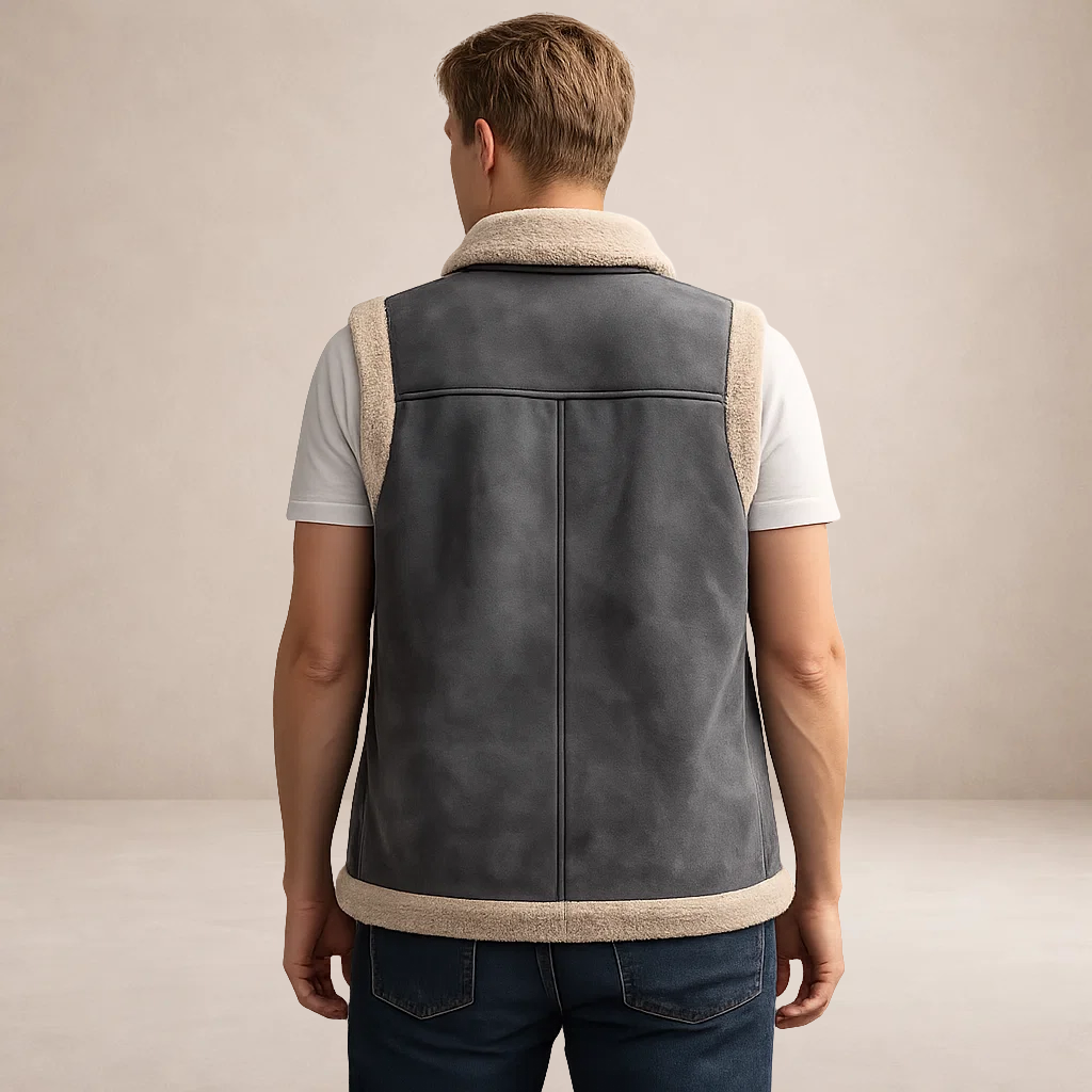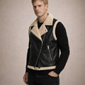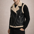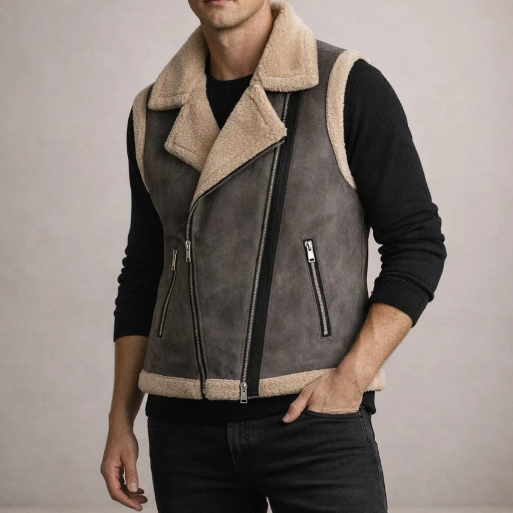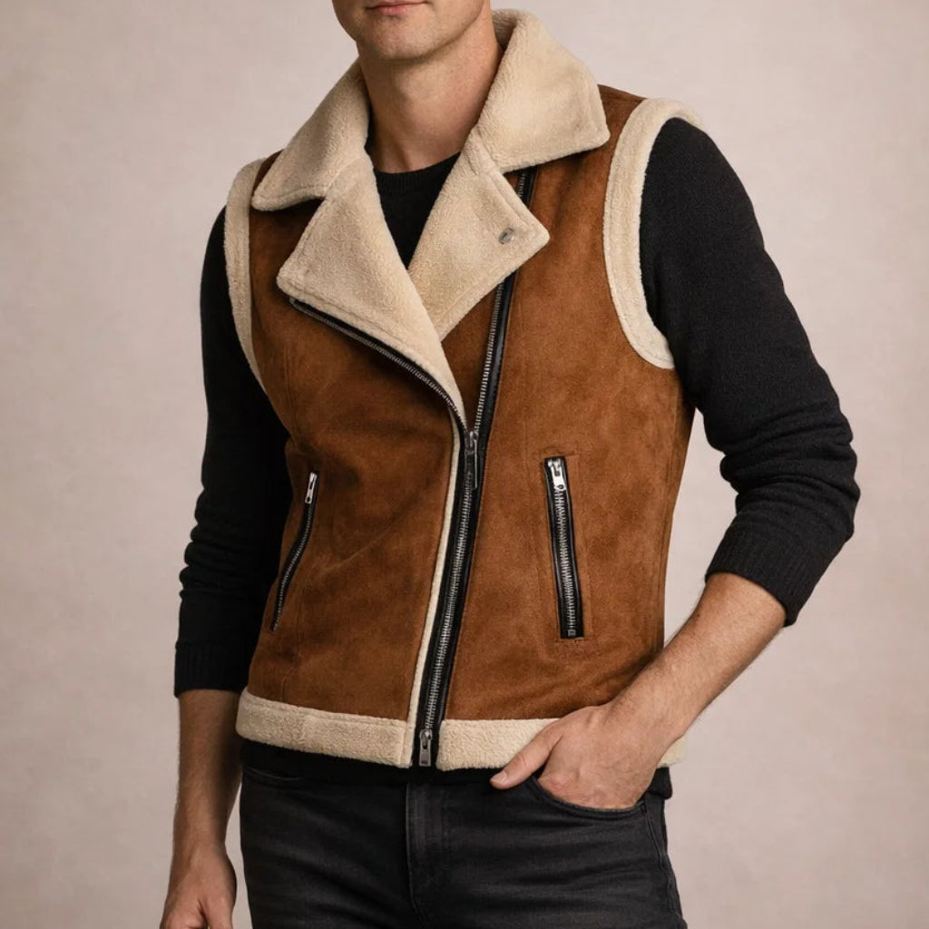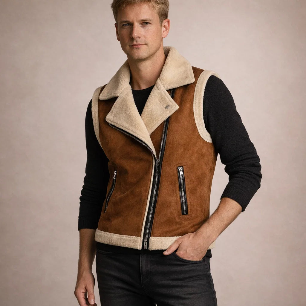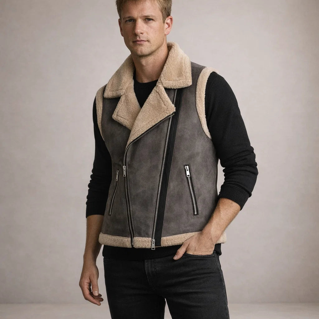 Men’s Faux Suede Shearling Biker Gilet with Zip Front