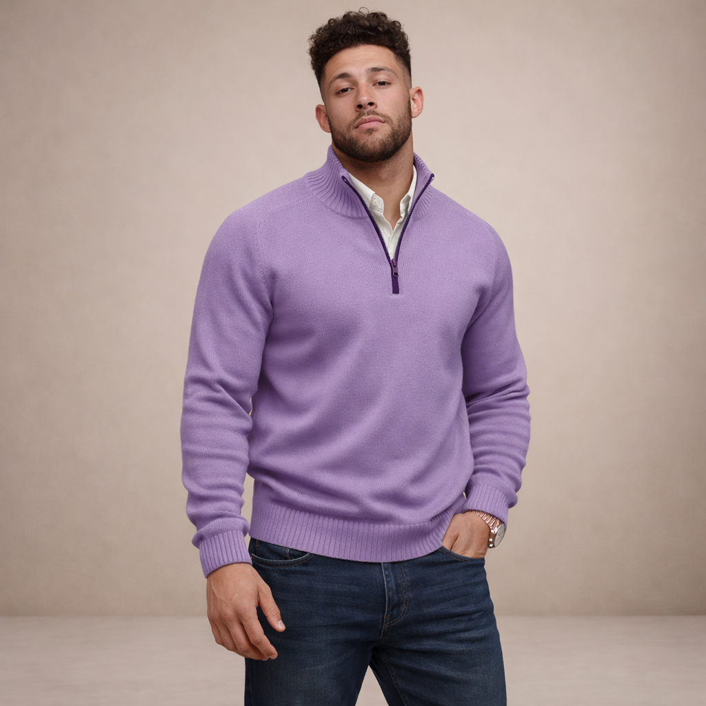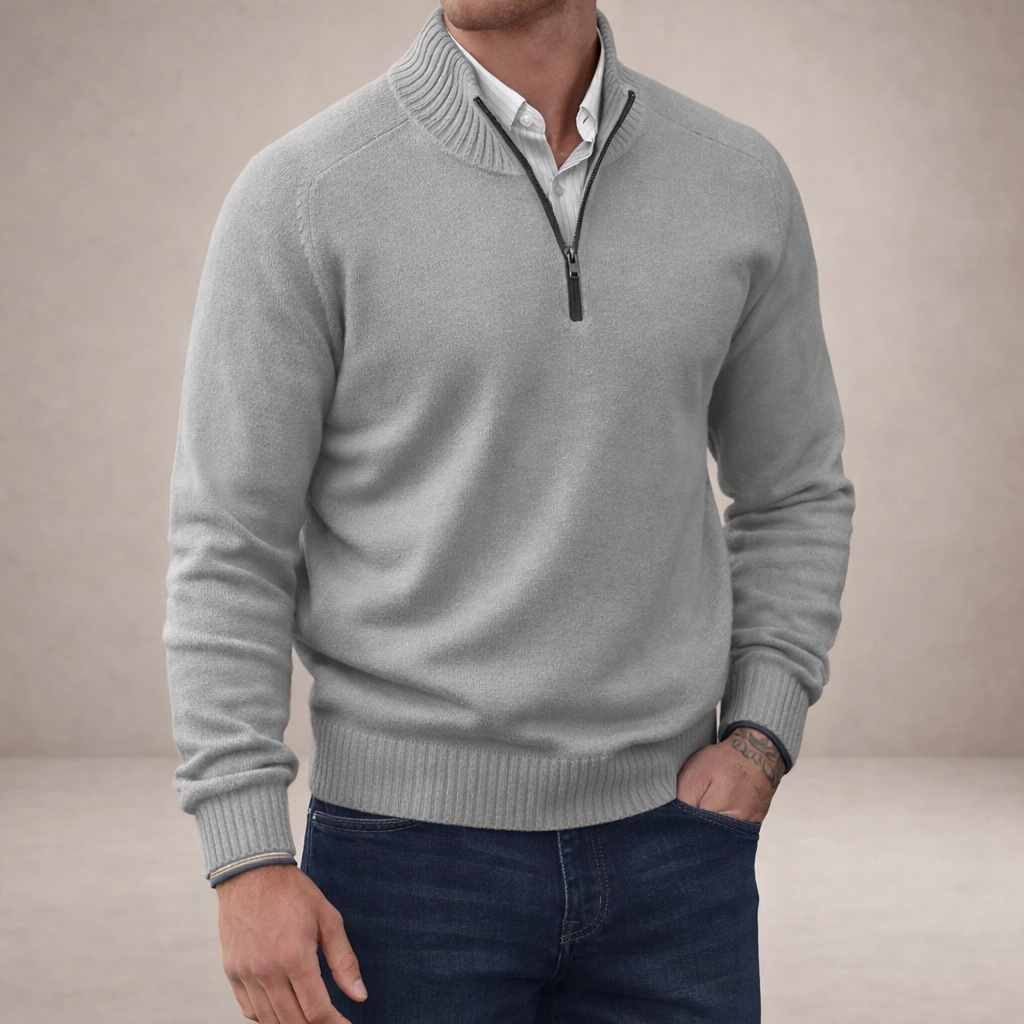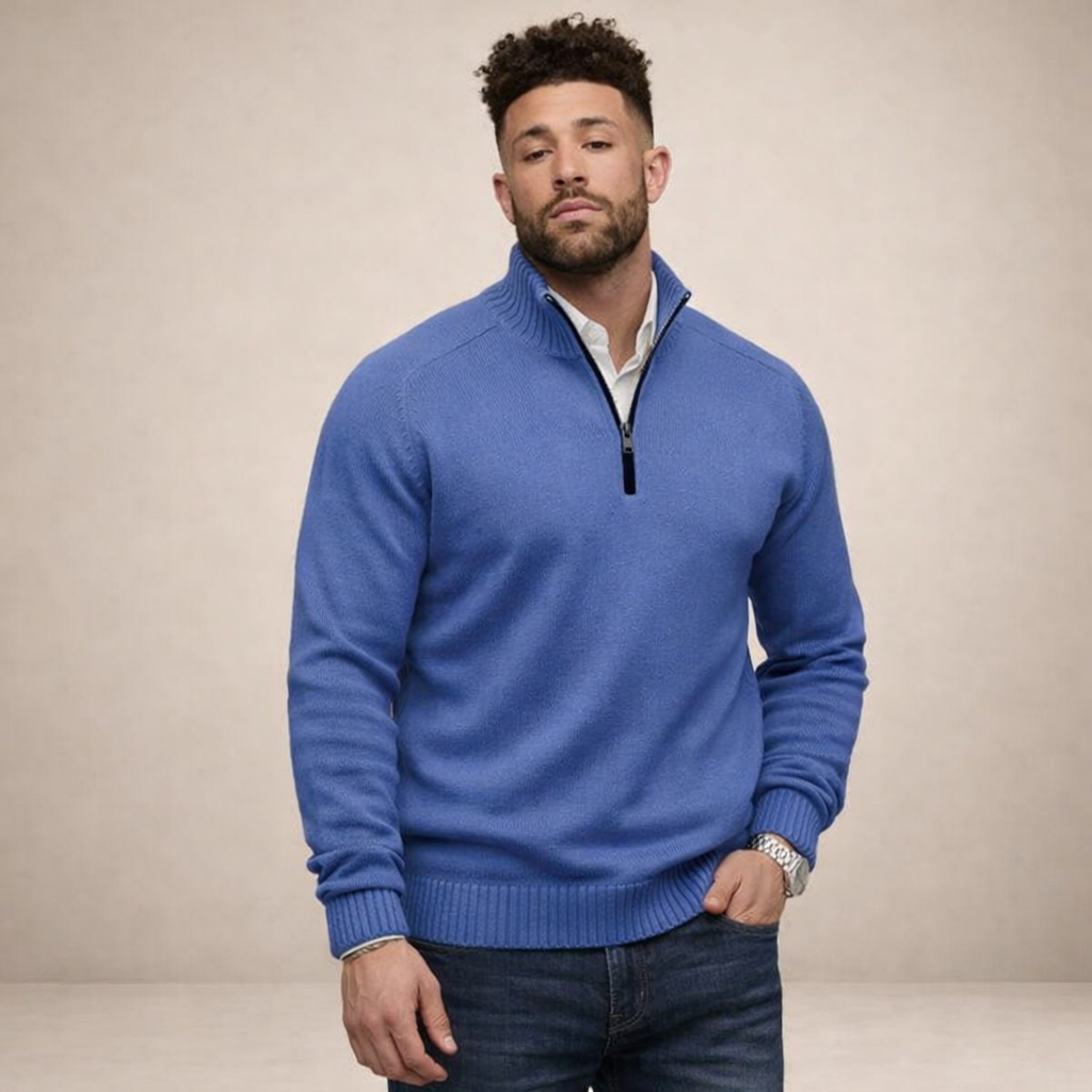 Men’s Half Zip Knit Jumper with Ribbed Collar
