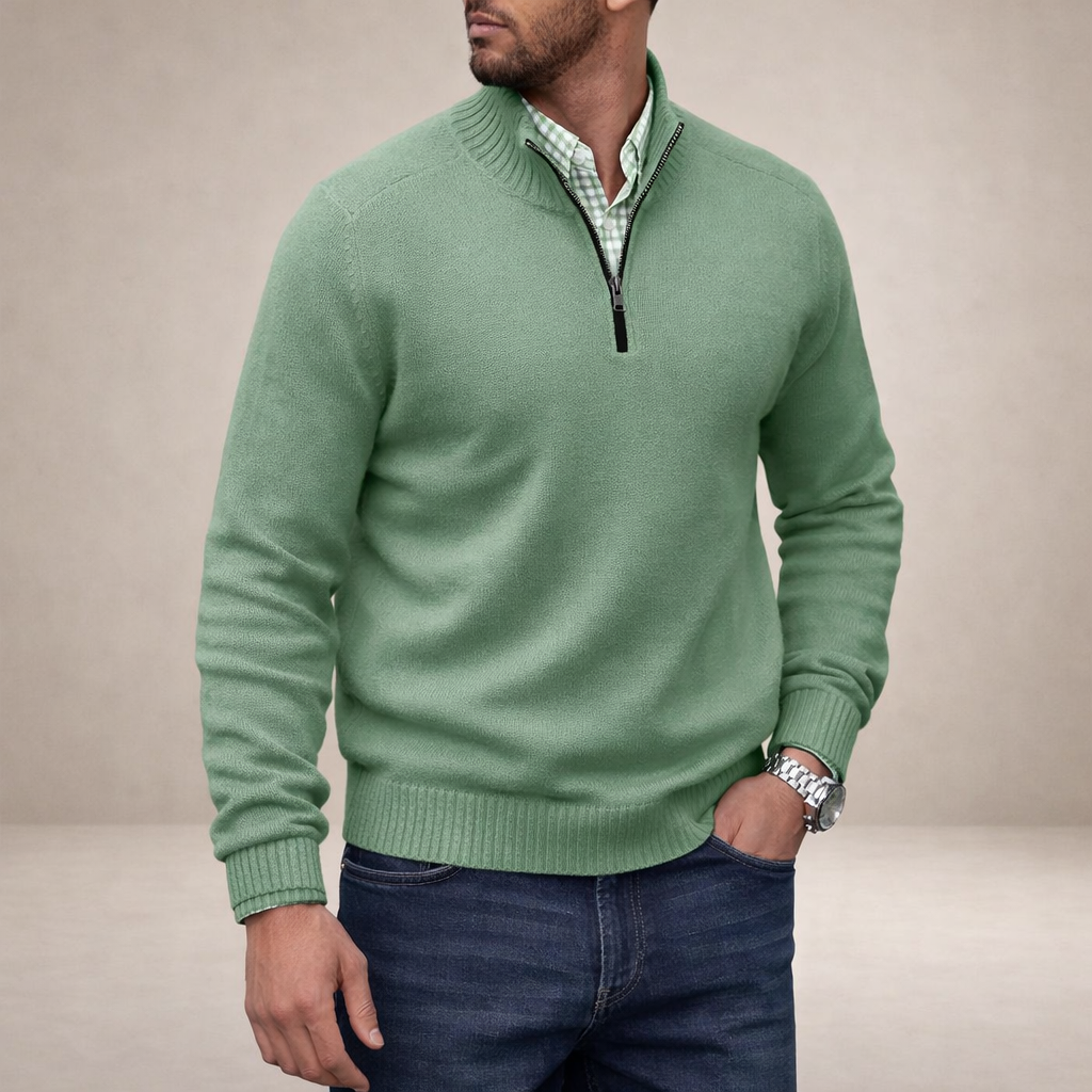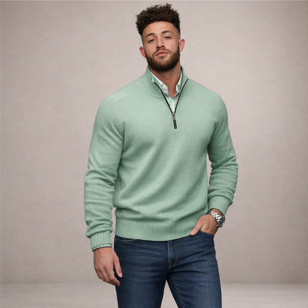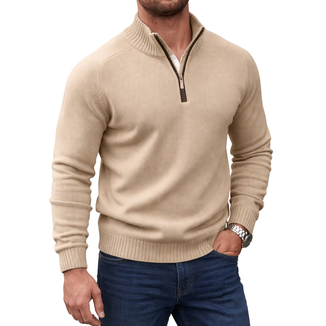 Men’s Half Zip Knit Jumper with Ribbed Collar