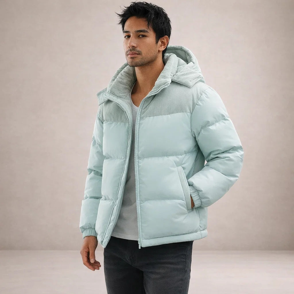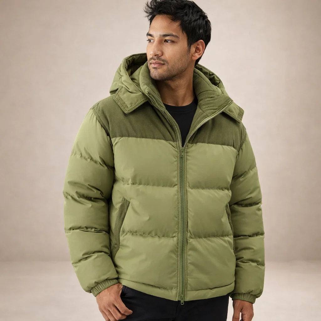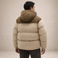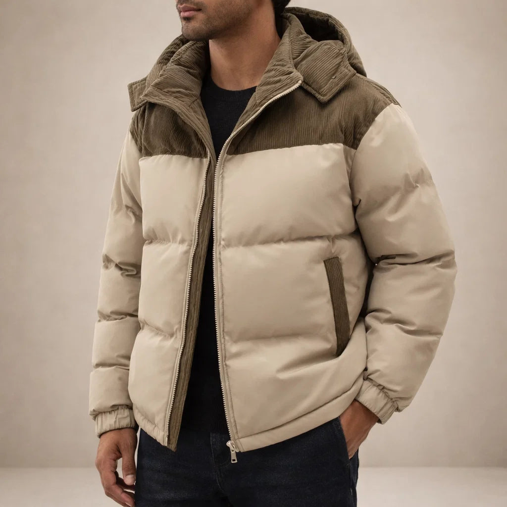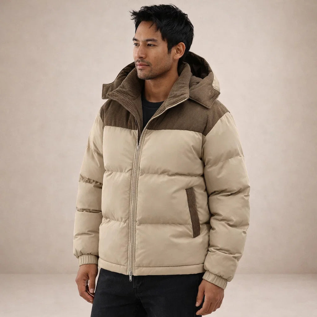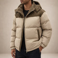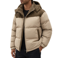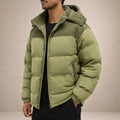 Men’s Hooded Padded Jacket with Zip Front and Contrast Panels