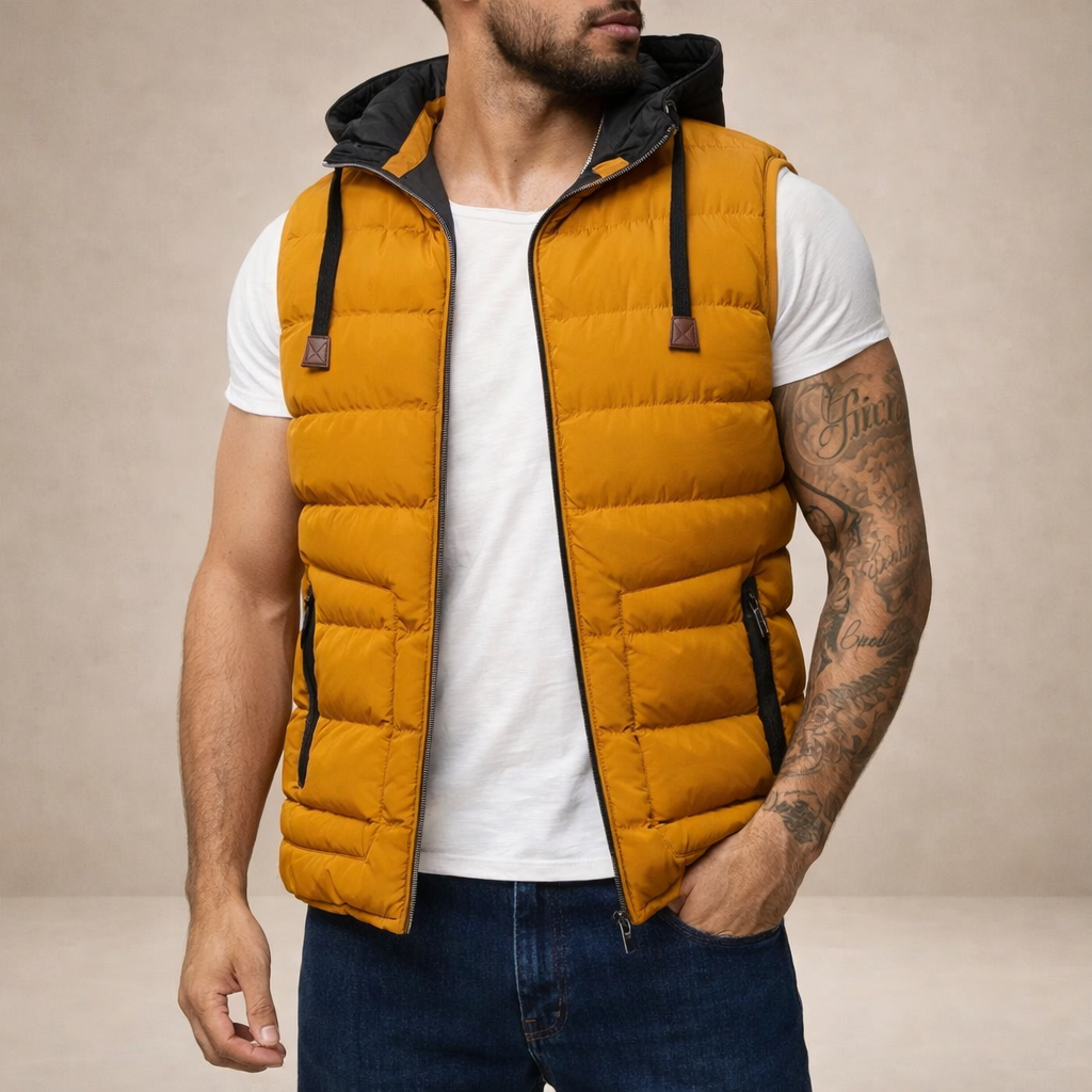 This men’s padded gilet combines practical warmth with a clean, modern profile, making it ideal for transitional seasons and active everyday wear. The sleeveless design allows easy layering while adding a confident pop of colour to casual outfits, from city walks to relaxed weekends.
