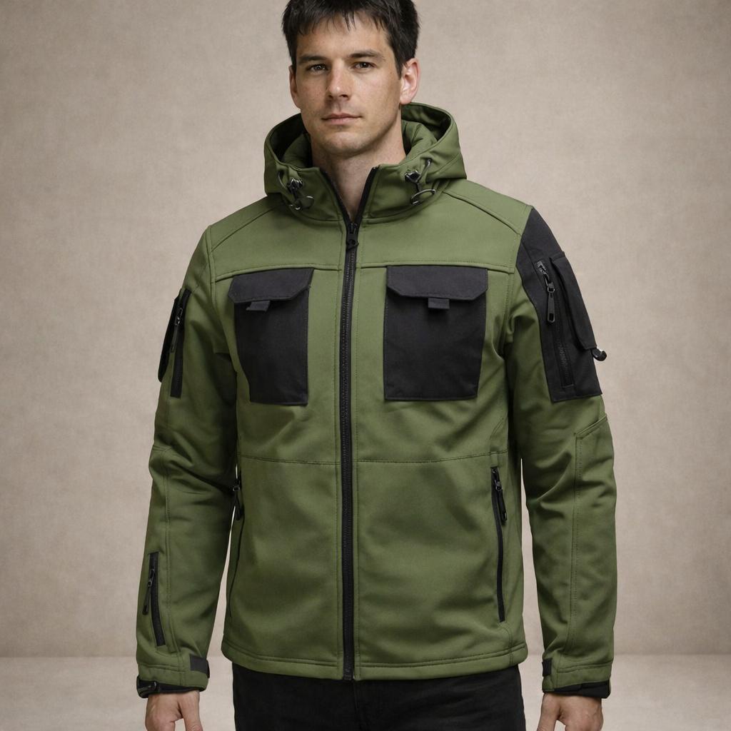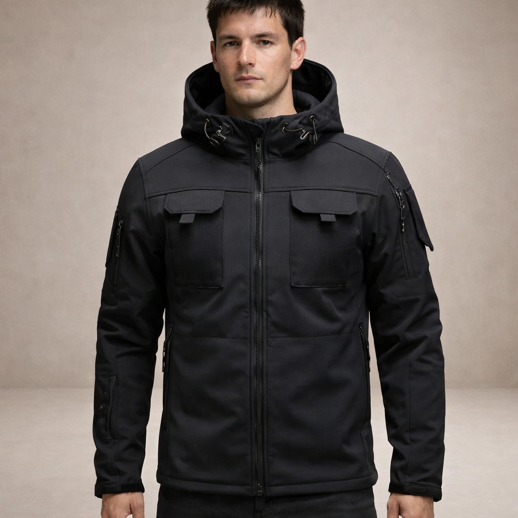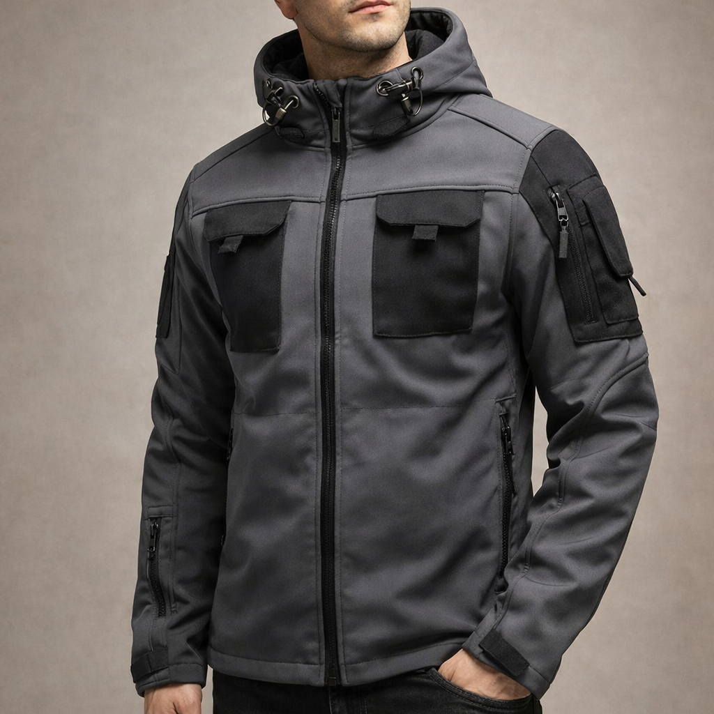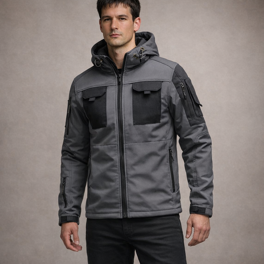 Design: Contemporary utility-inspired silhouette with a zip-through front and structured panel detailing for a clean, tactical finish