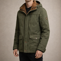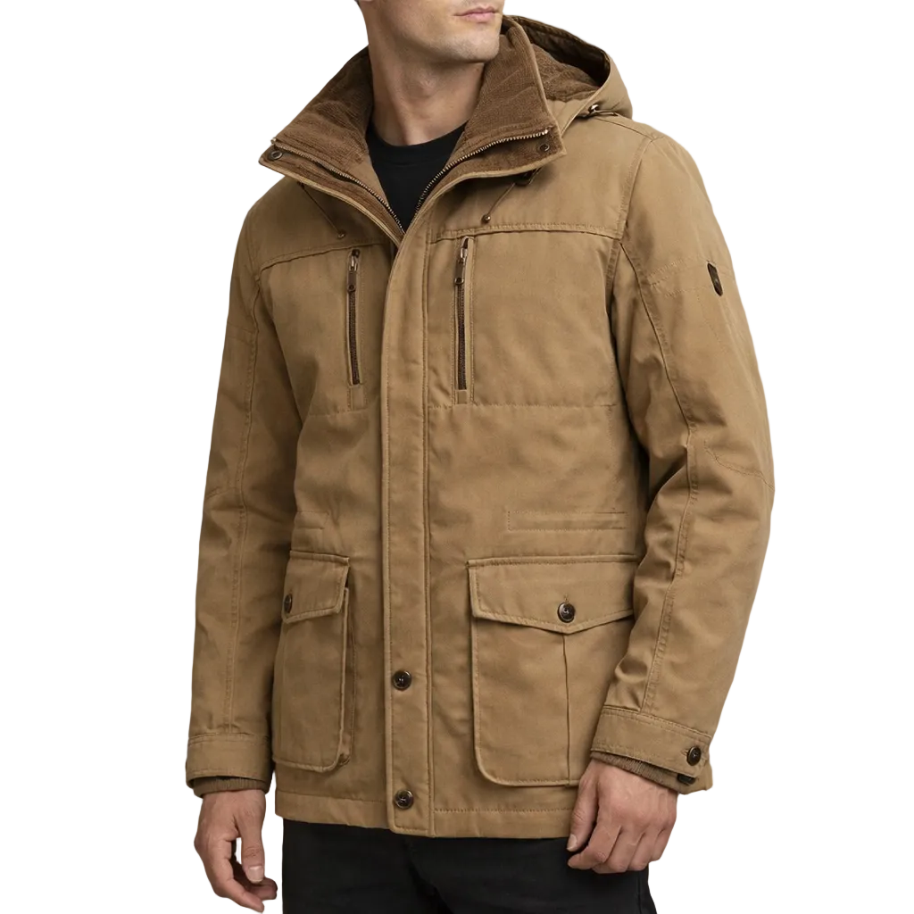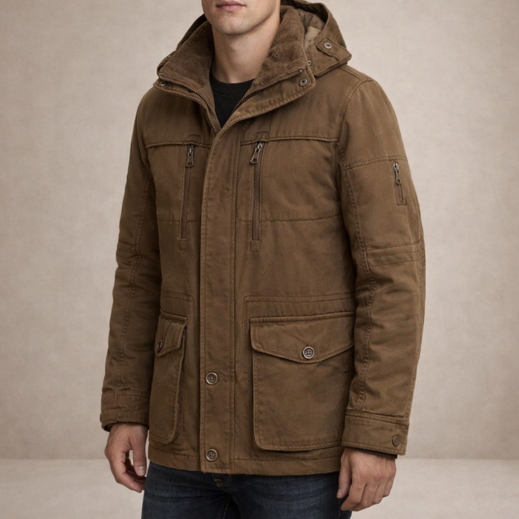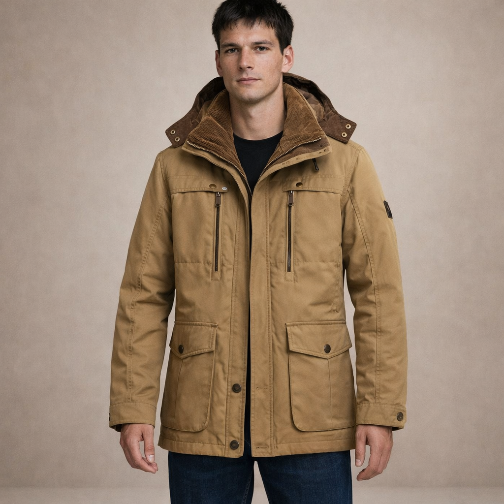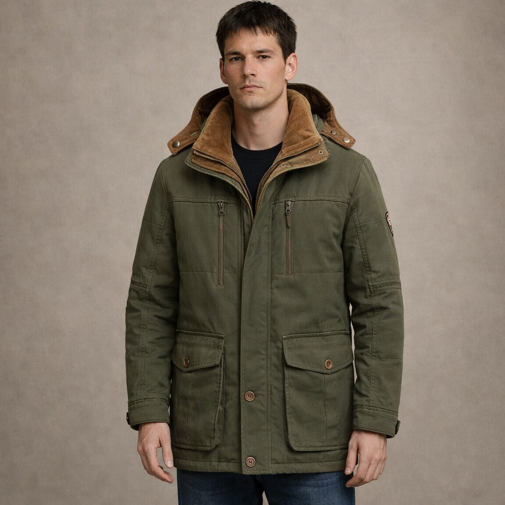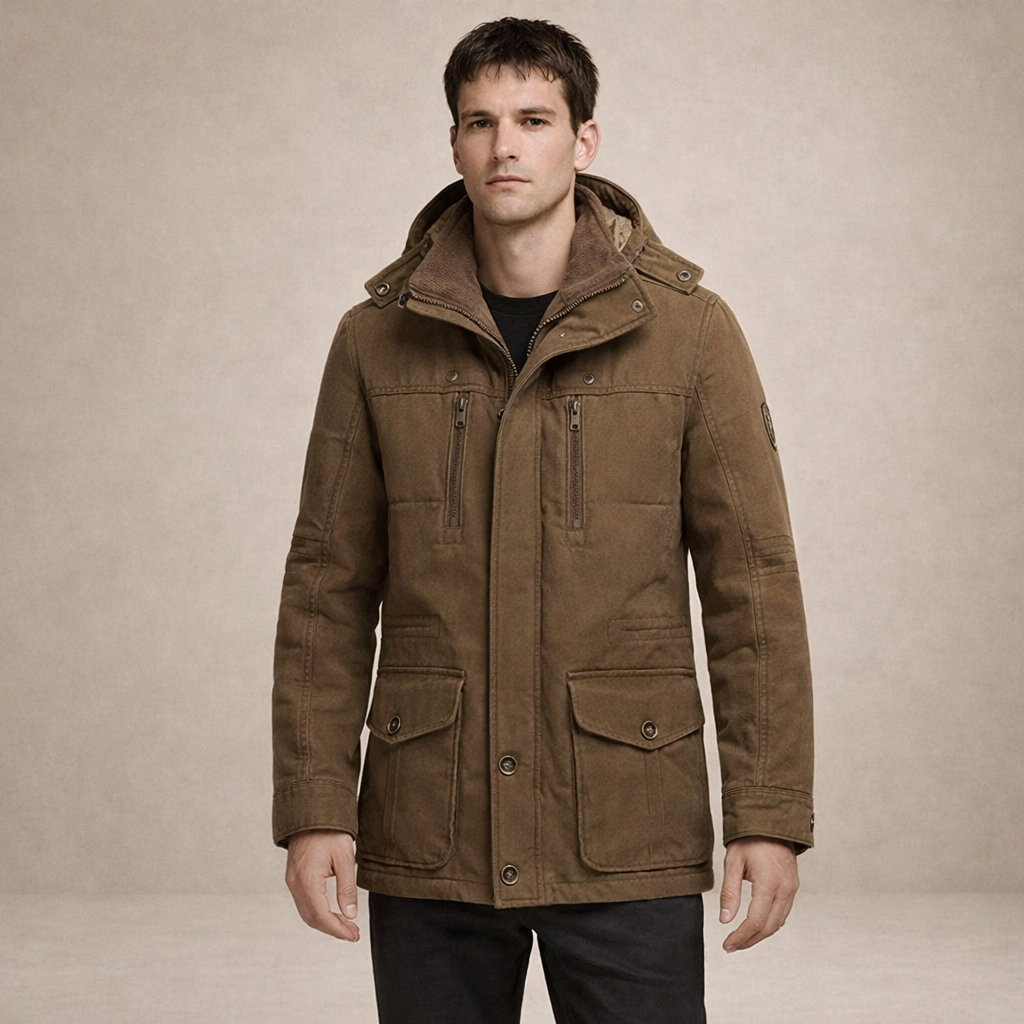 Practical, refined and built for colder days, this Men’s Hooded Utility Winter Jacket offers dependable warmth with a modern outdoor aesthetic. The structured silhouette and functional detailing make it an ideal choice for daily commuting, weekend wear or countryside escapes.