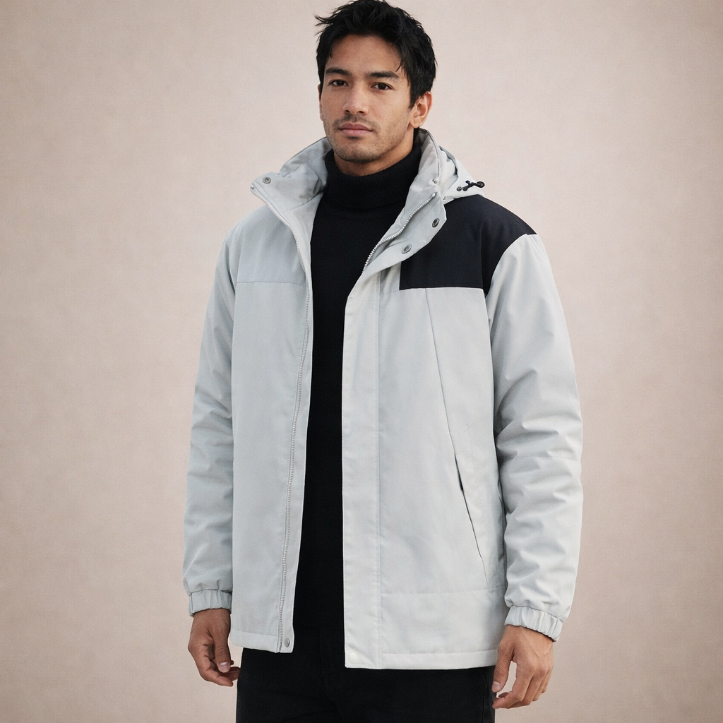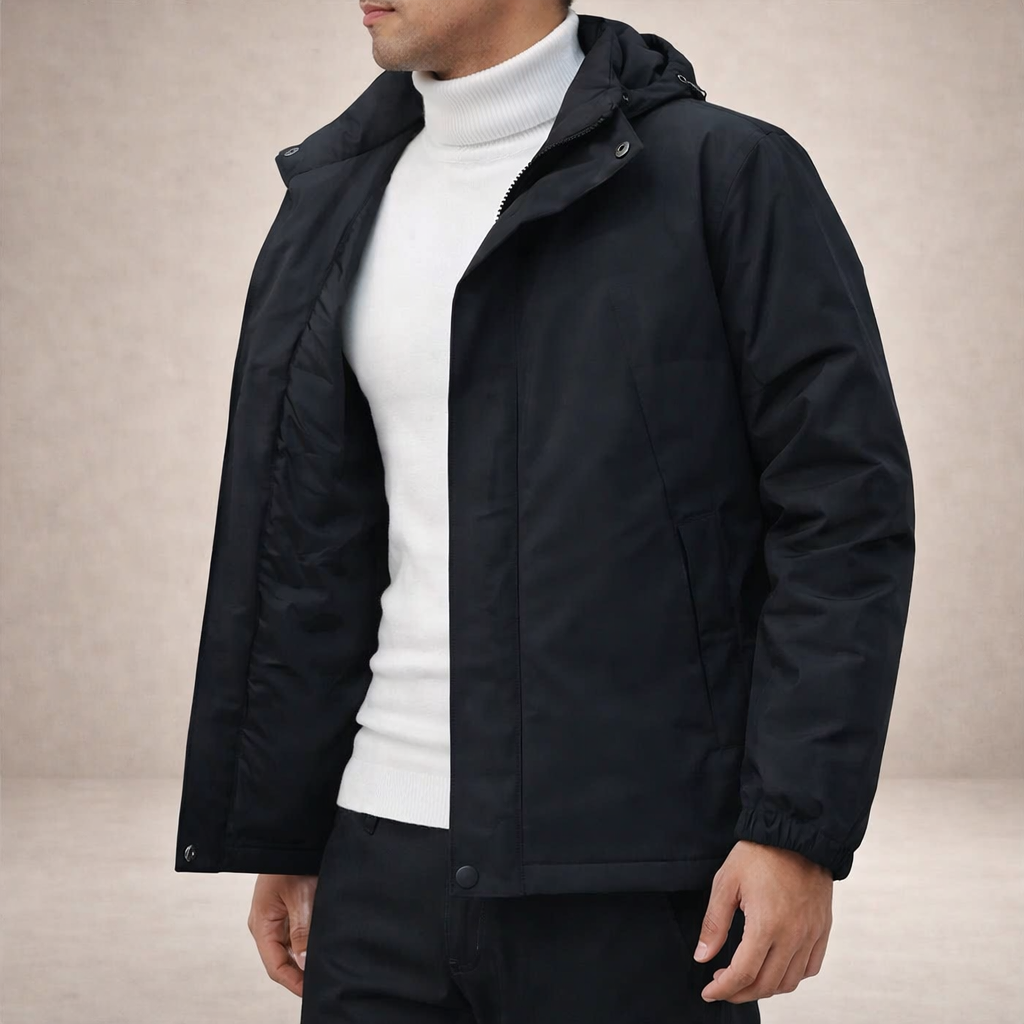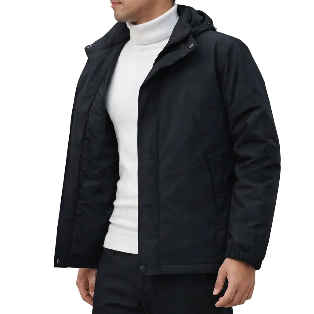 This men’s insulated hooded jacket combines modern simplicity with dependable warmth, making it a reliable choice for everyday wear in cooler conditions. Cleanly finished and practical, it’s ideal for both casual outings and daily commuting.