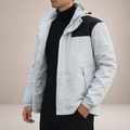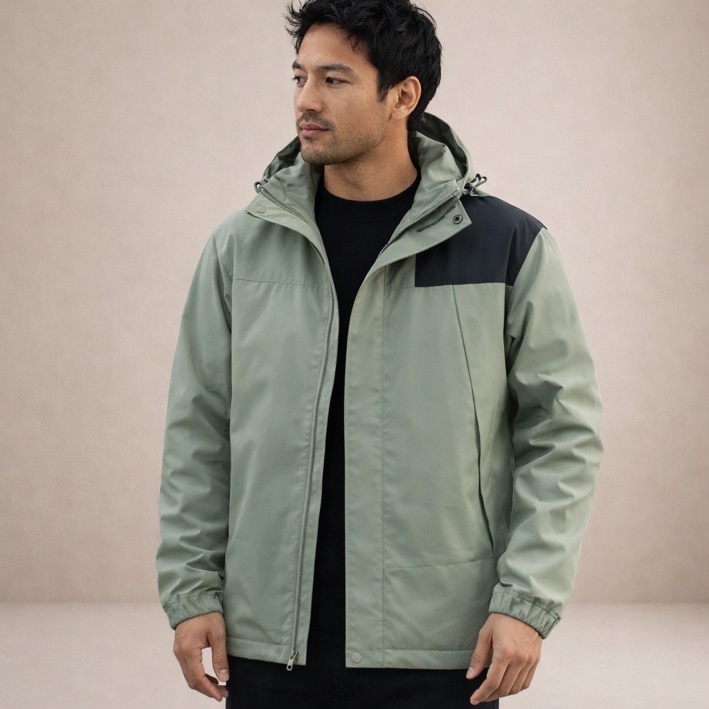 Design: Sleek, minimalist silhouette with a full zip front and integrated hood for a clean, contemporary look.