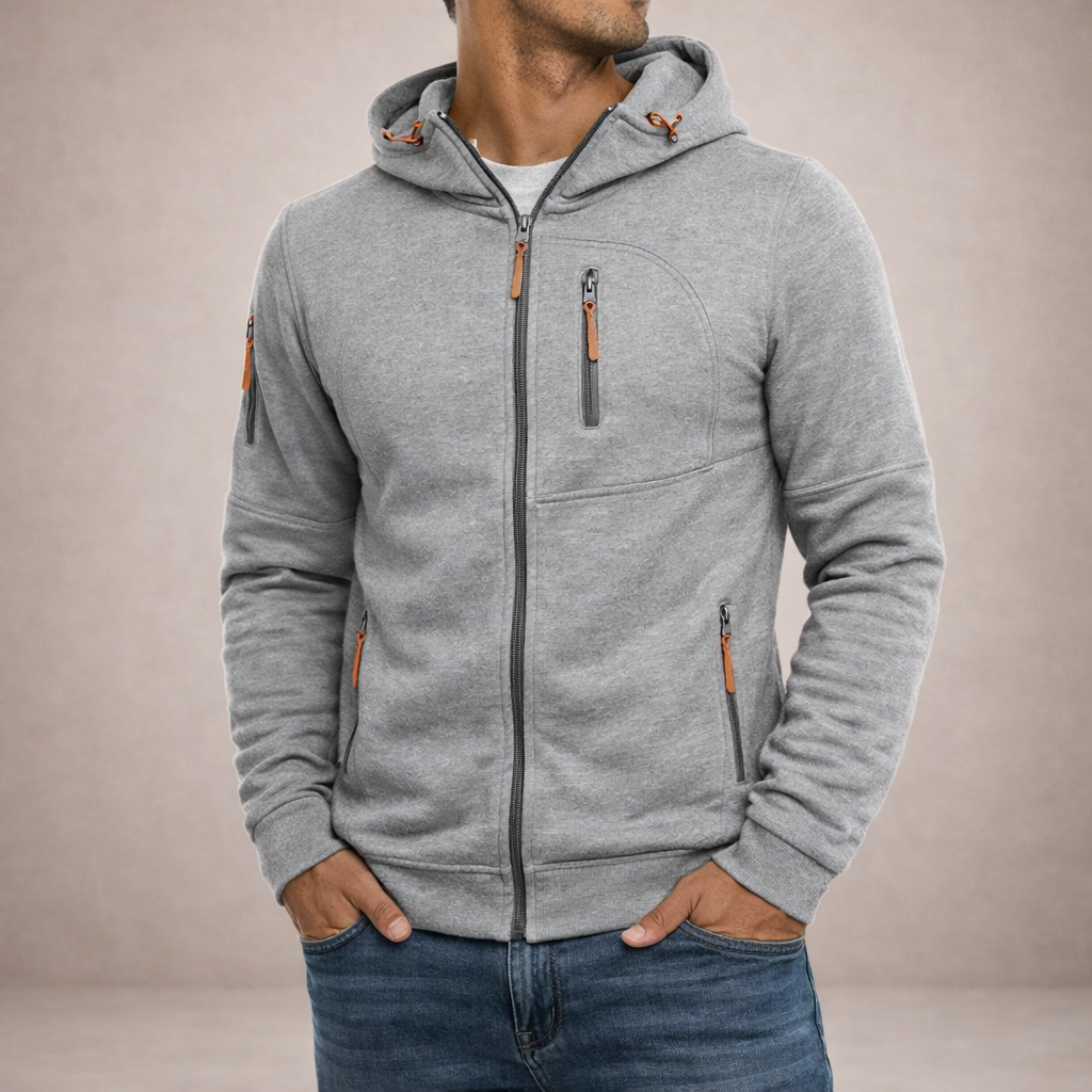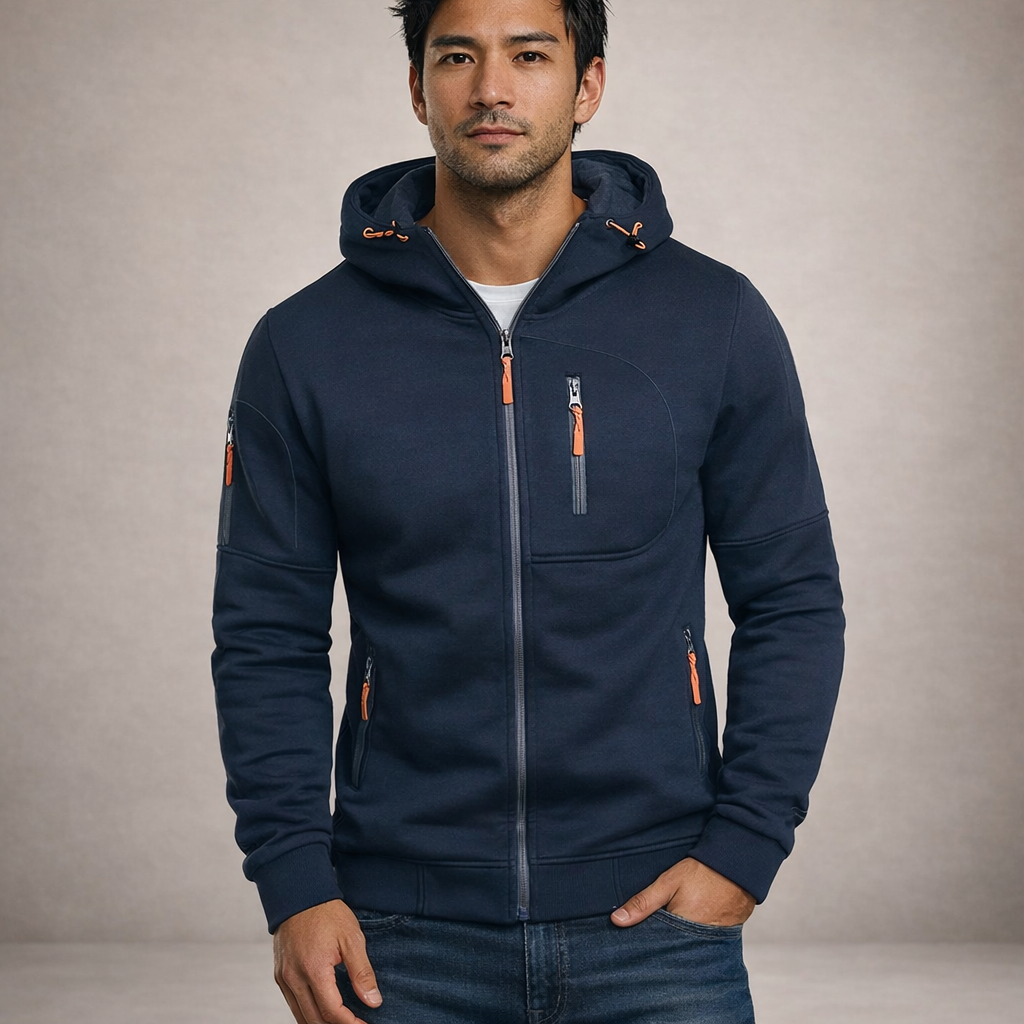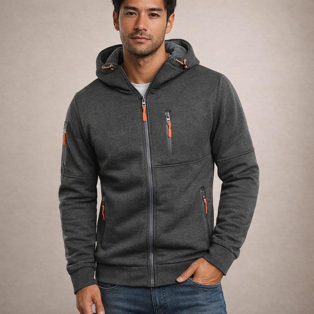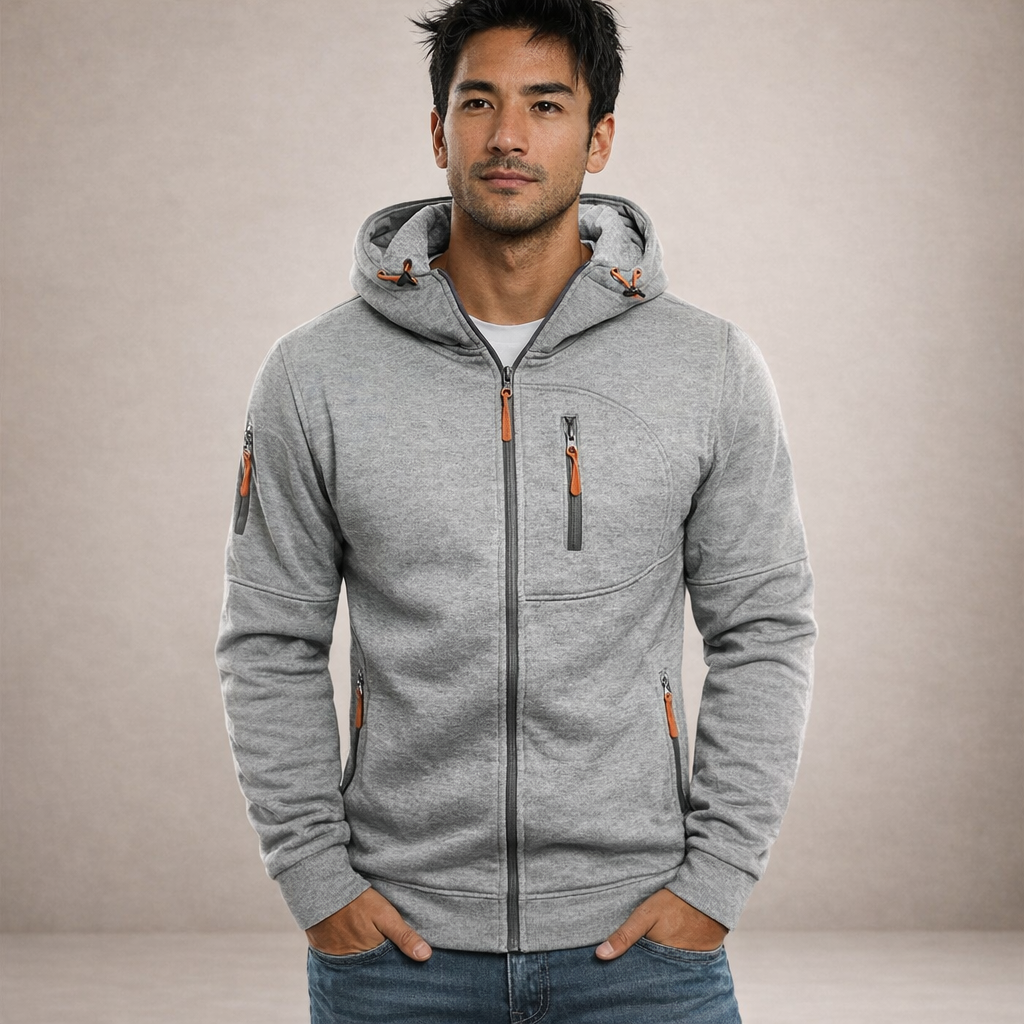 Men’s Hooded Zip-Up Jacket with Functional Pocket Detailing