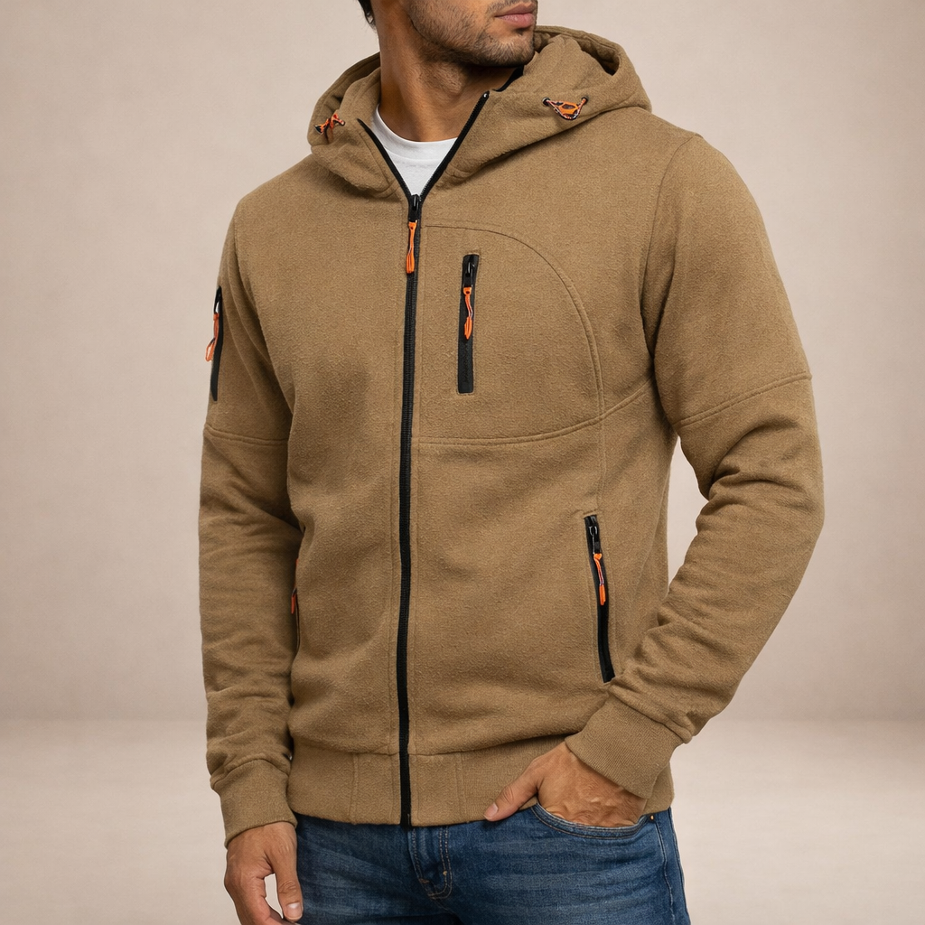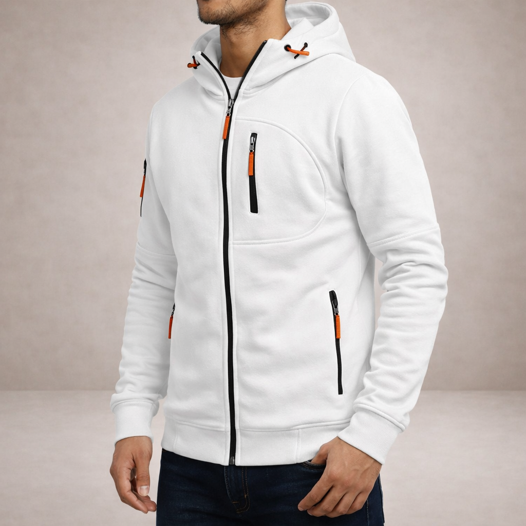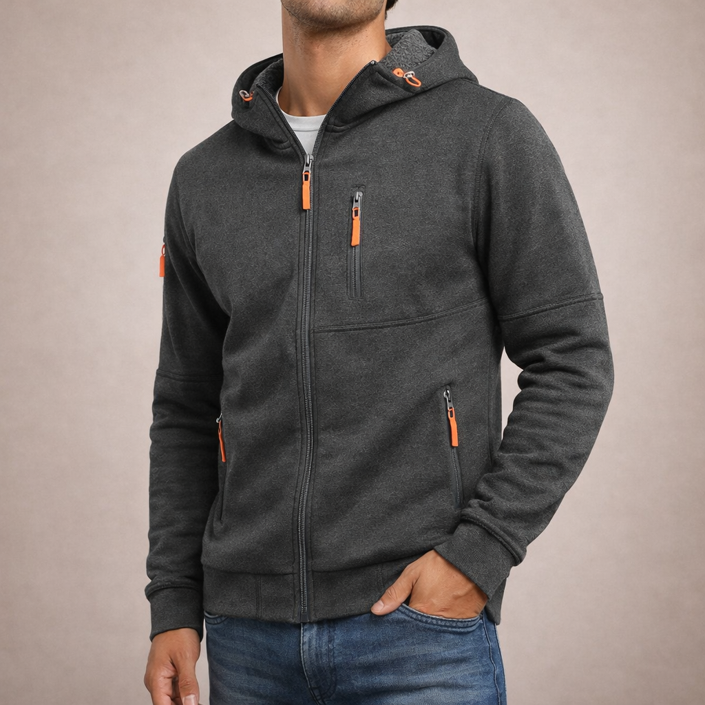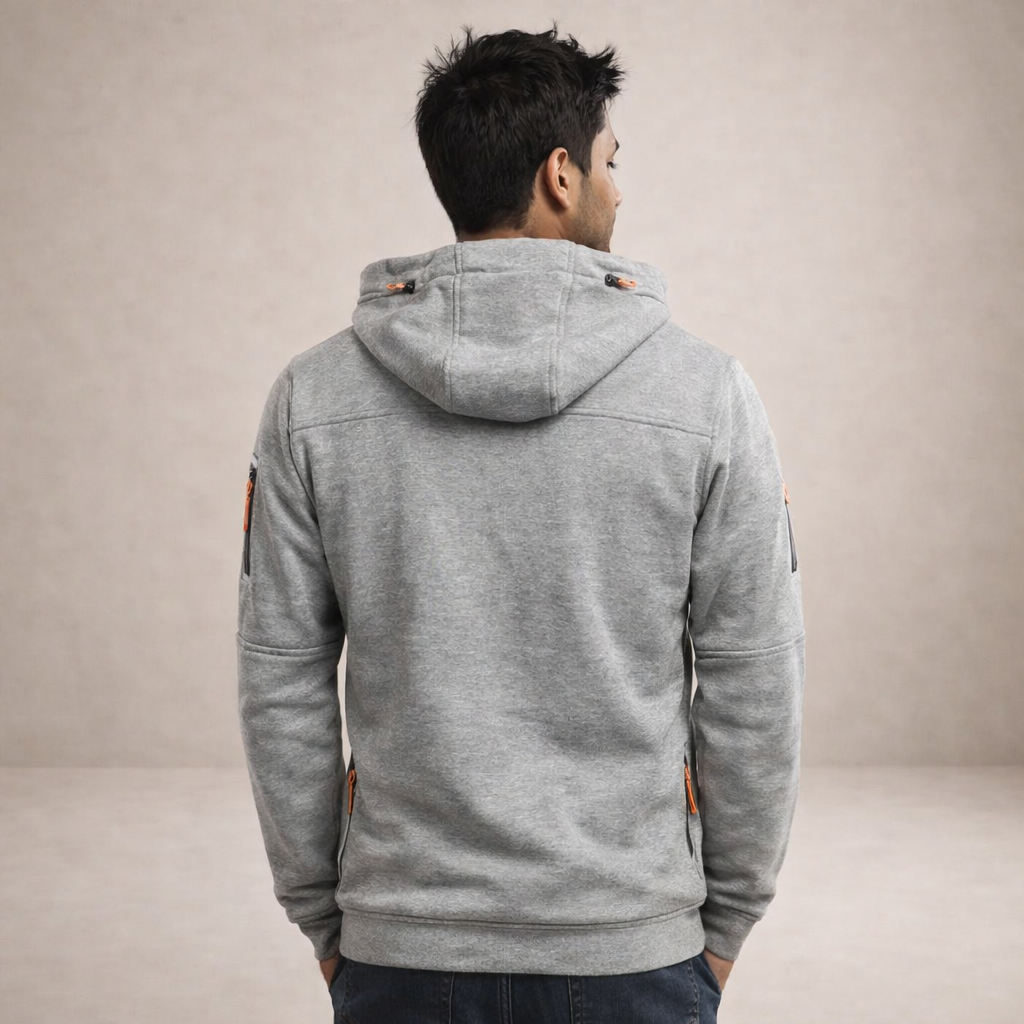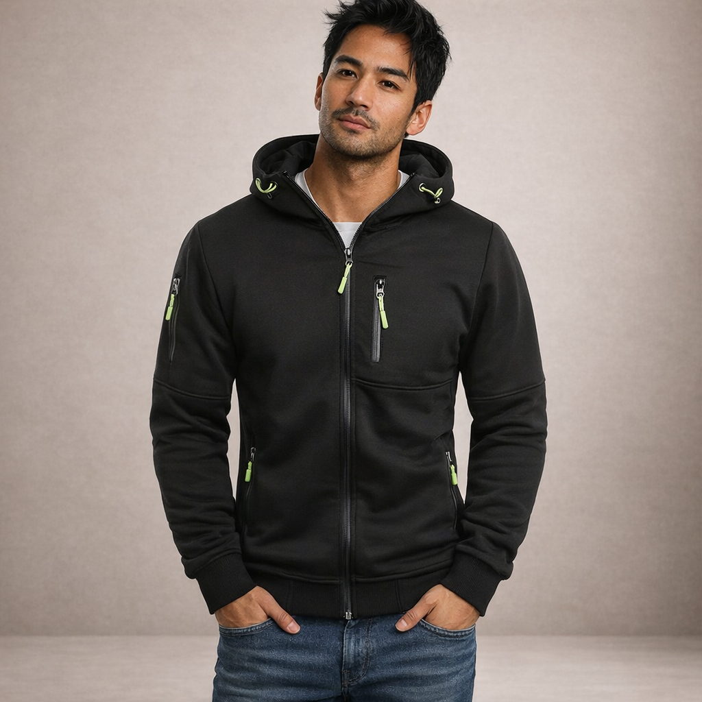Men’s Hooded Zip-Up Jacket with Functional Pocket Detailing