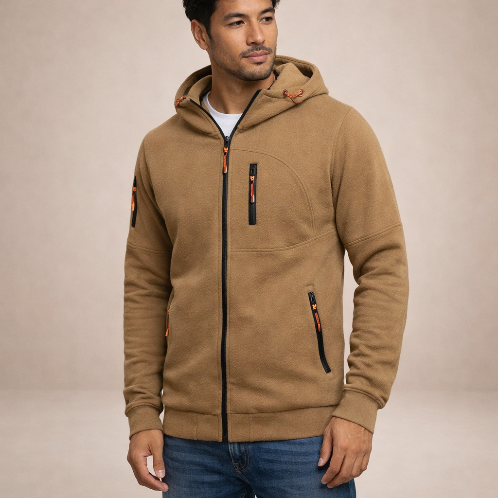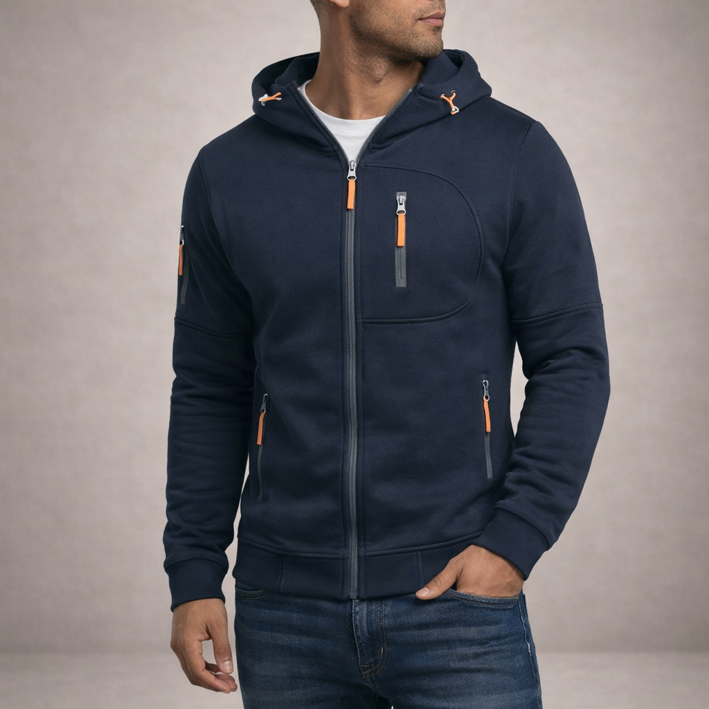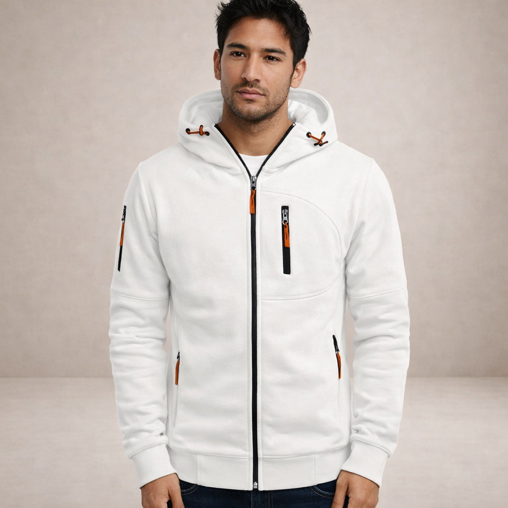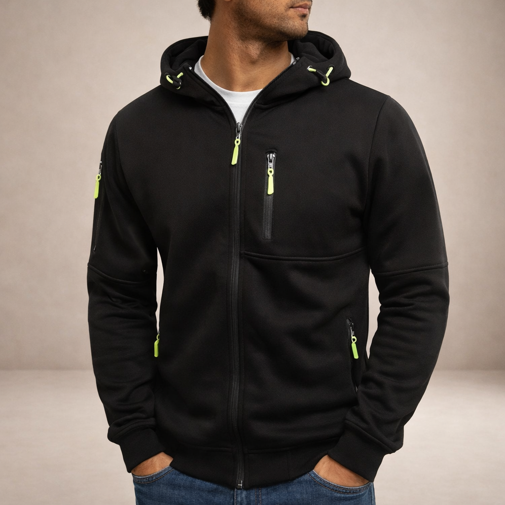 Men’s Hooded Zip-Up Jacket with Functional Pocket Detailing