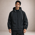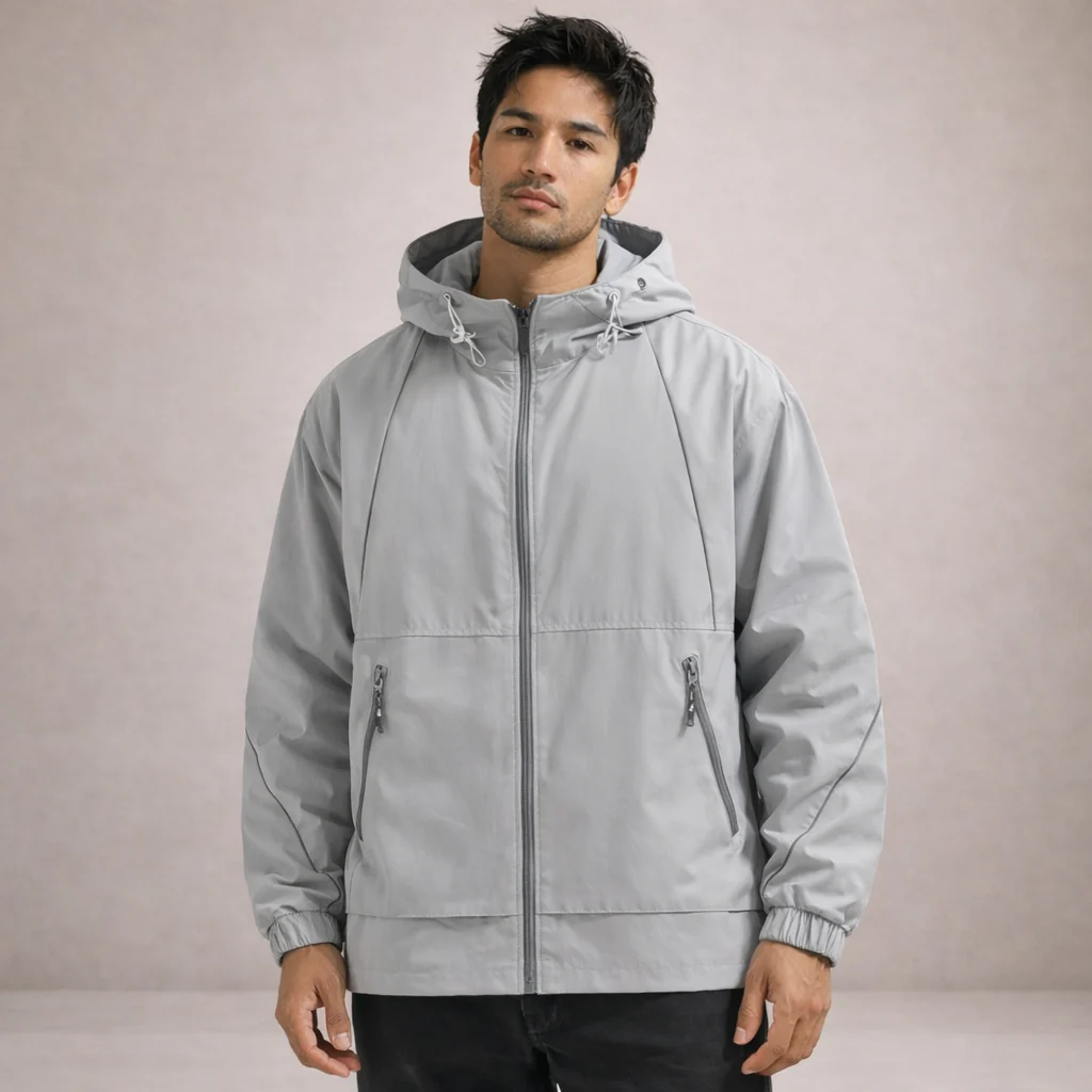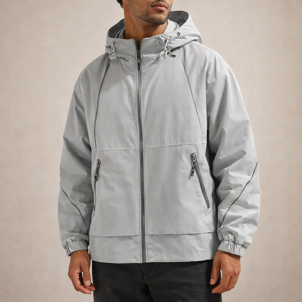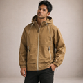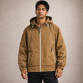 Design: Contemporary utility-inspired silhouette with a full zip front and integrated hood