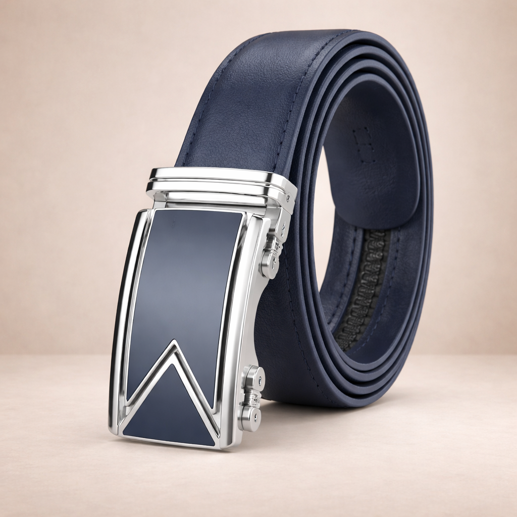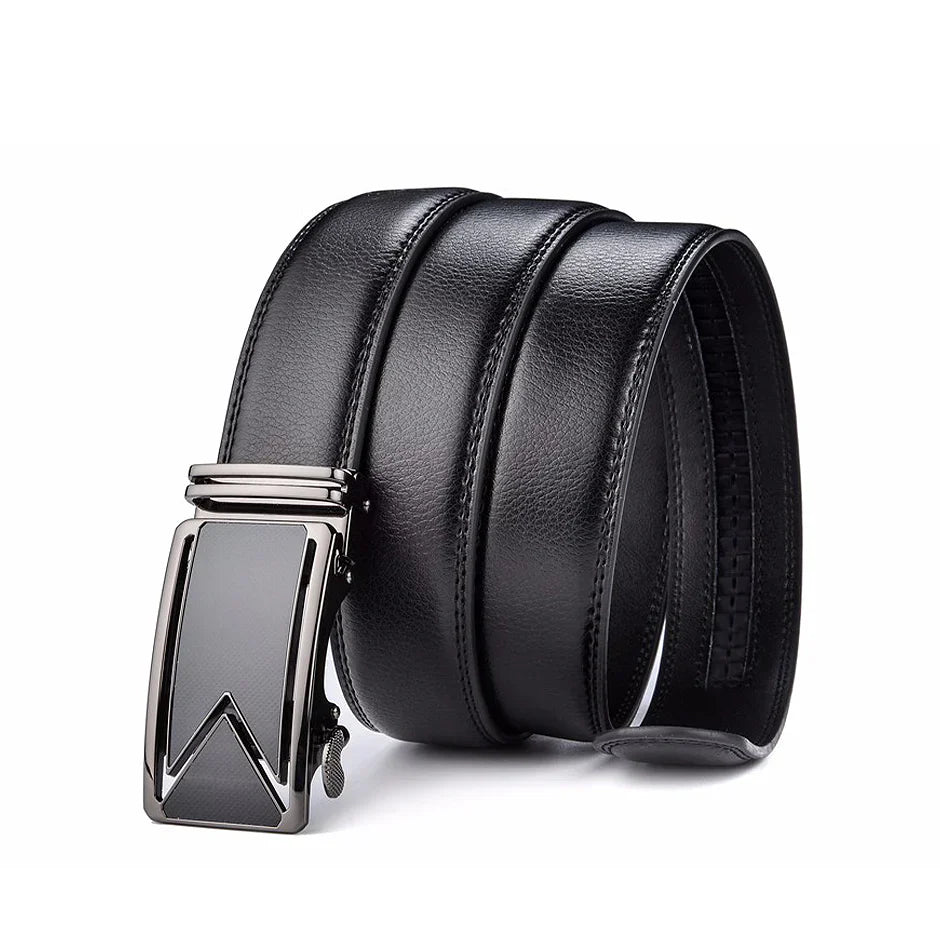 Men’s Leather Belt with Automatic Buckle and Smooth Finish