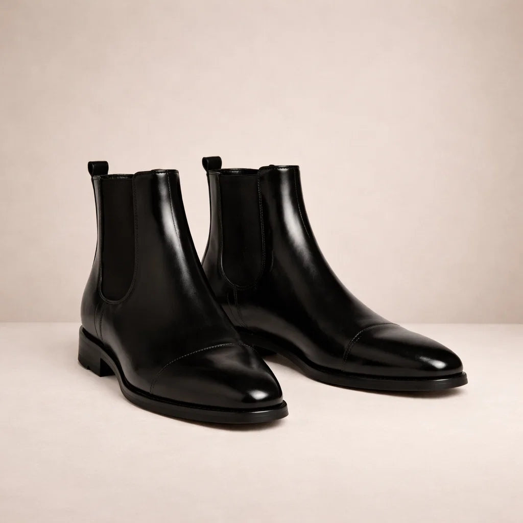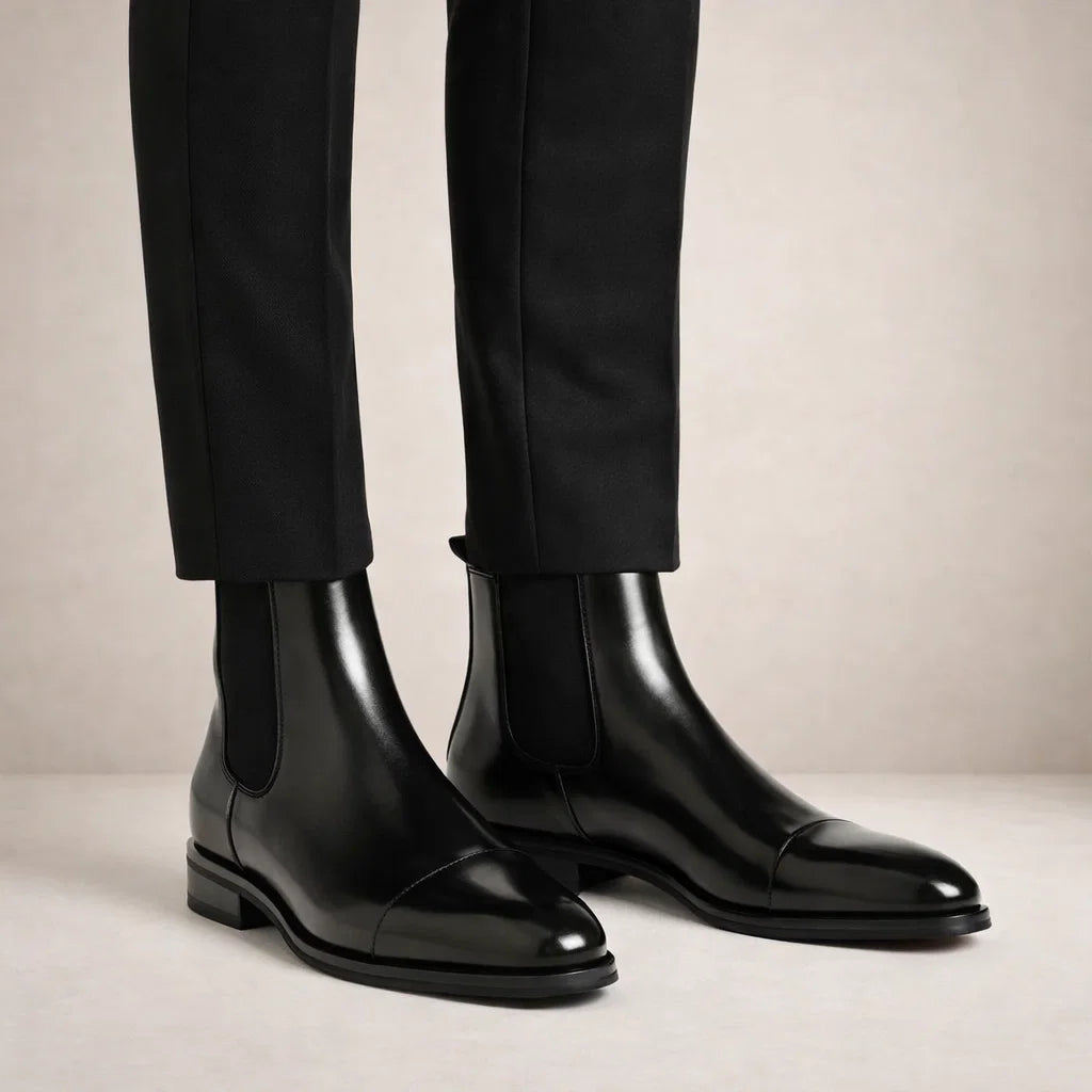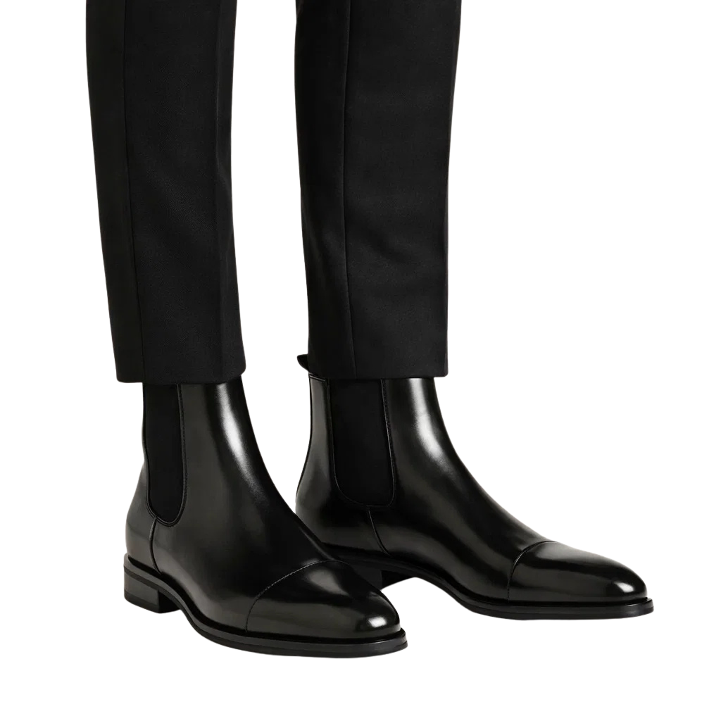 Men’s Leather Chelsea Boots with Elastic Side Panels