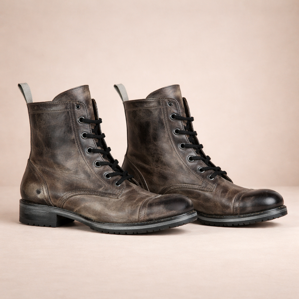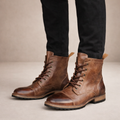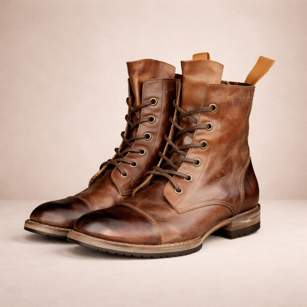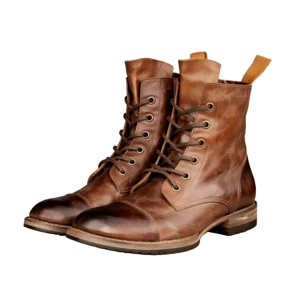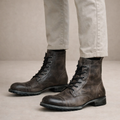Design: Classic lace-up boot silhouette with a rounded toe and subtle vintage-inspired finish