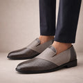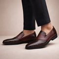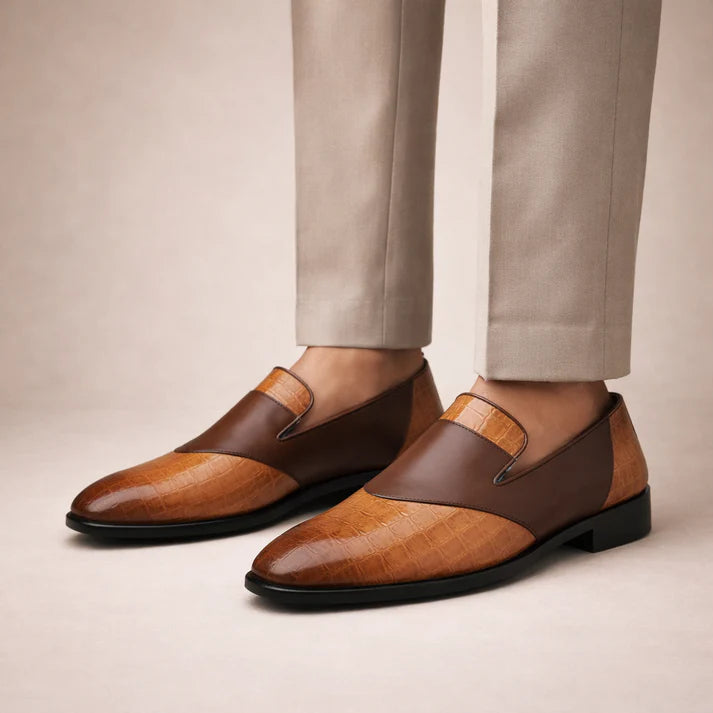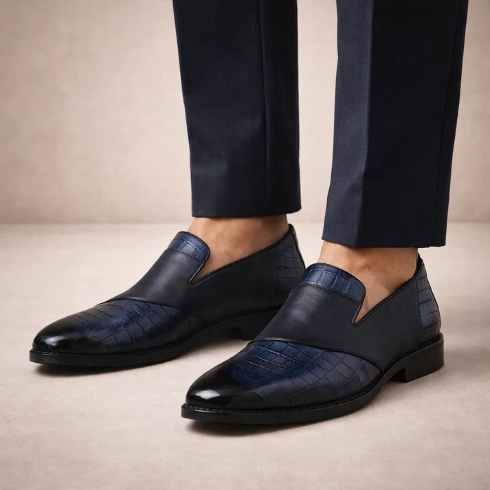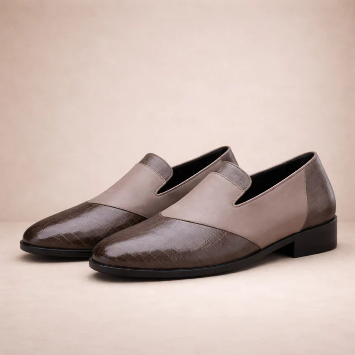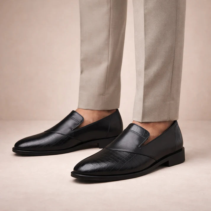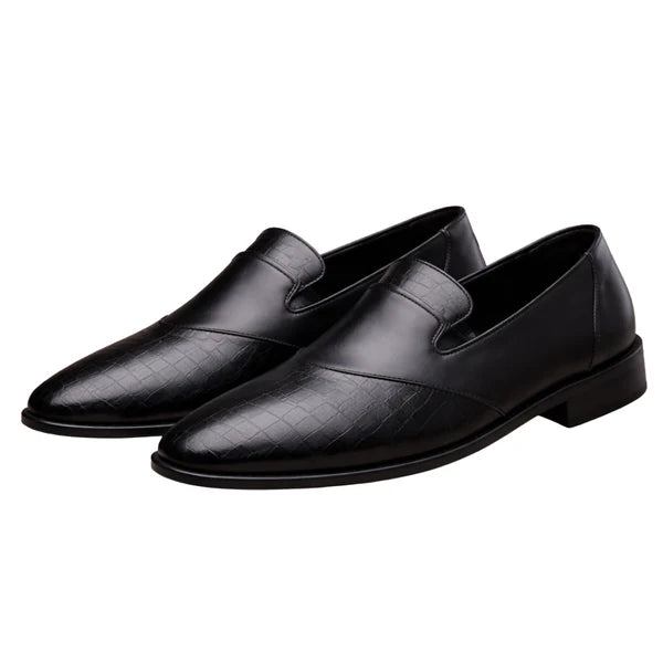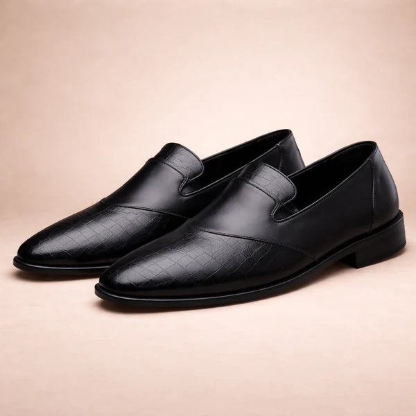 Men’s Leather Slip-On Loafers with Textured Front Panel