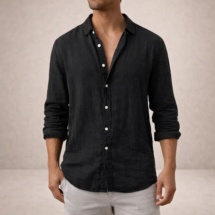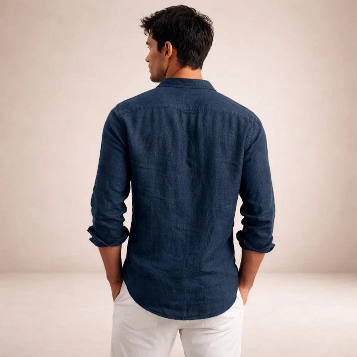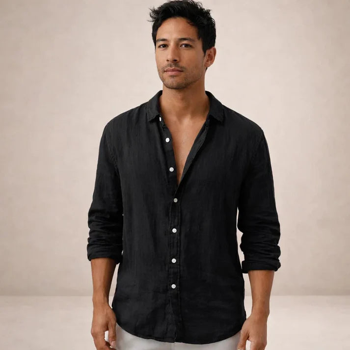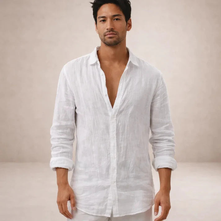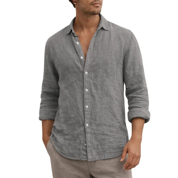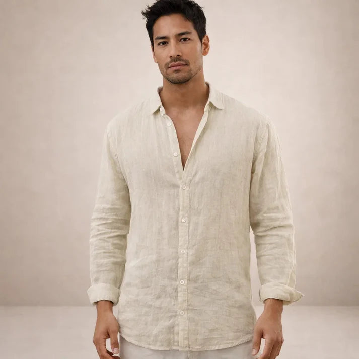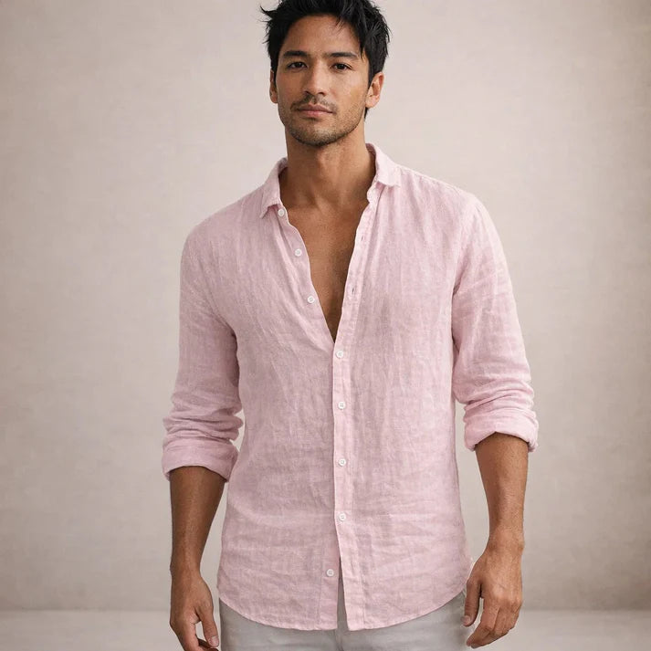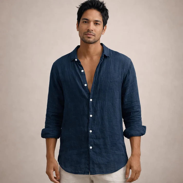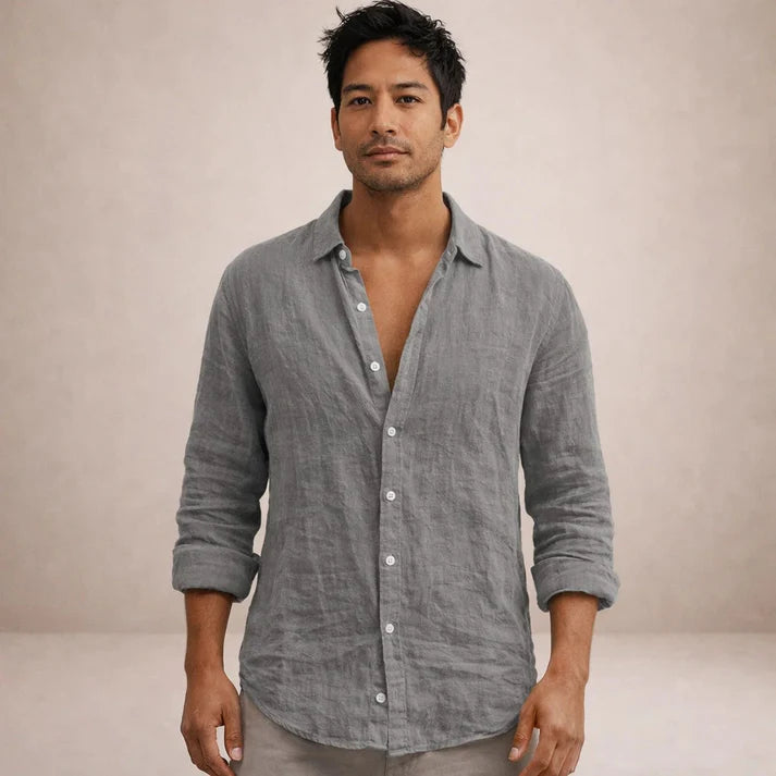 Men’s Linen Long Sleeve Shirt with Button Front