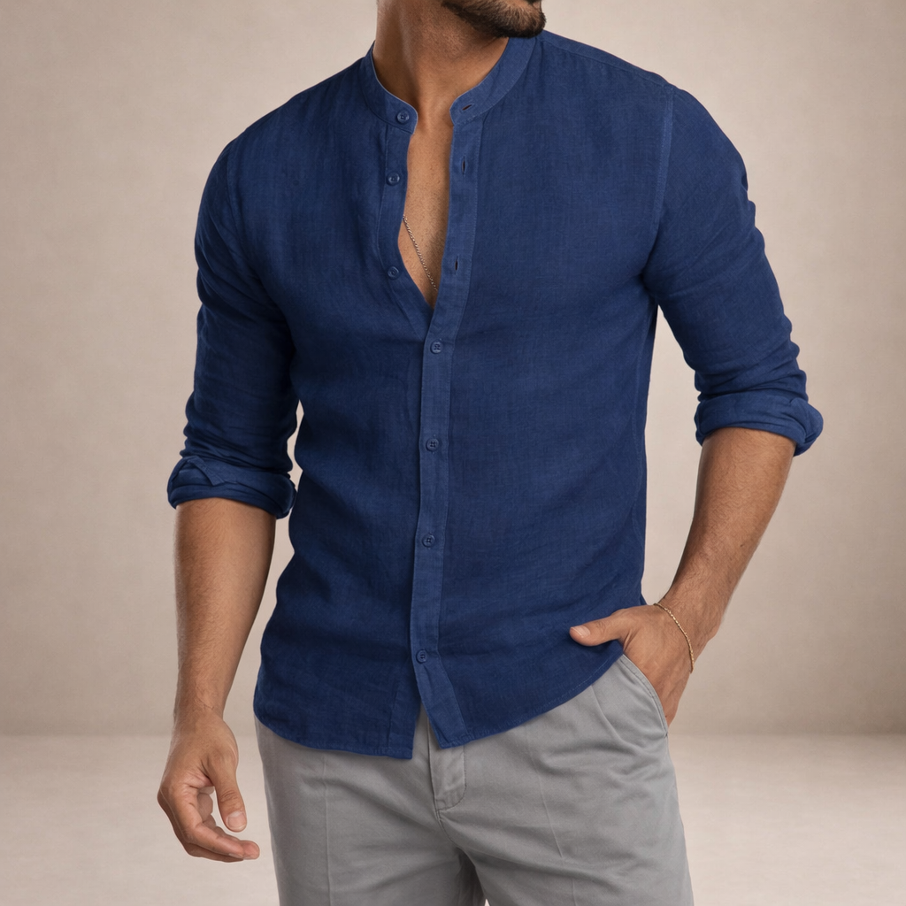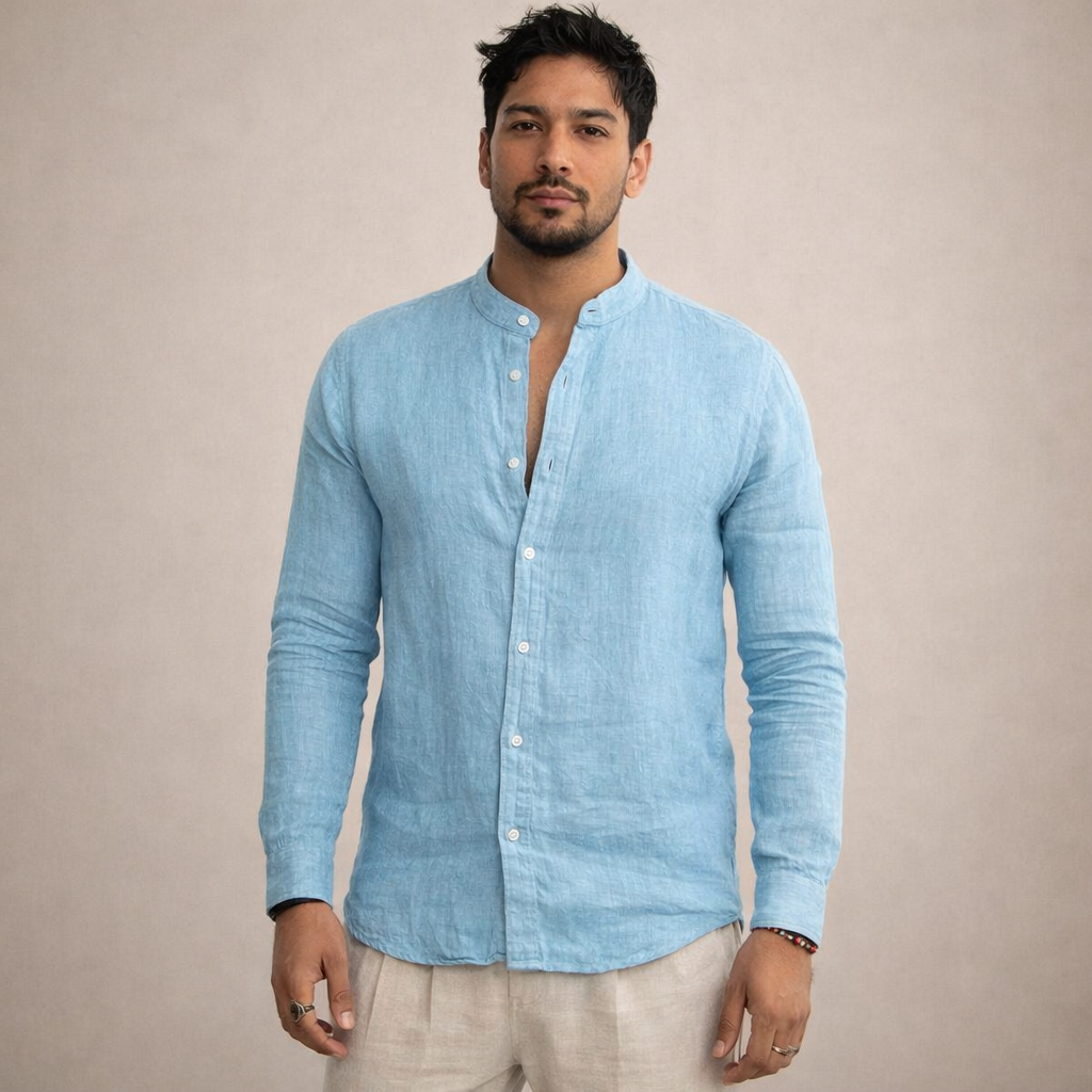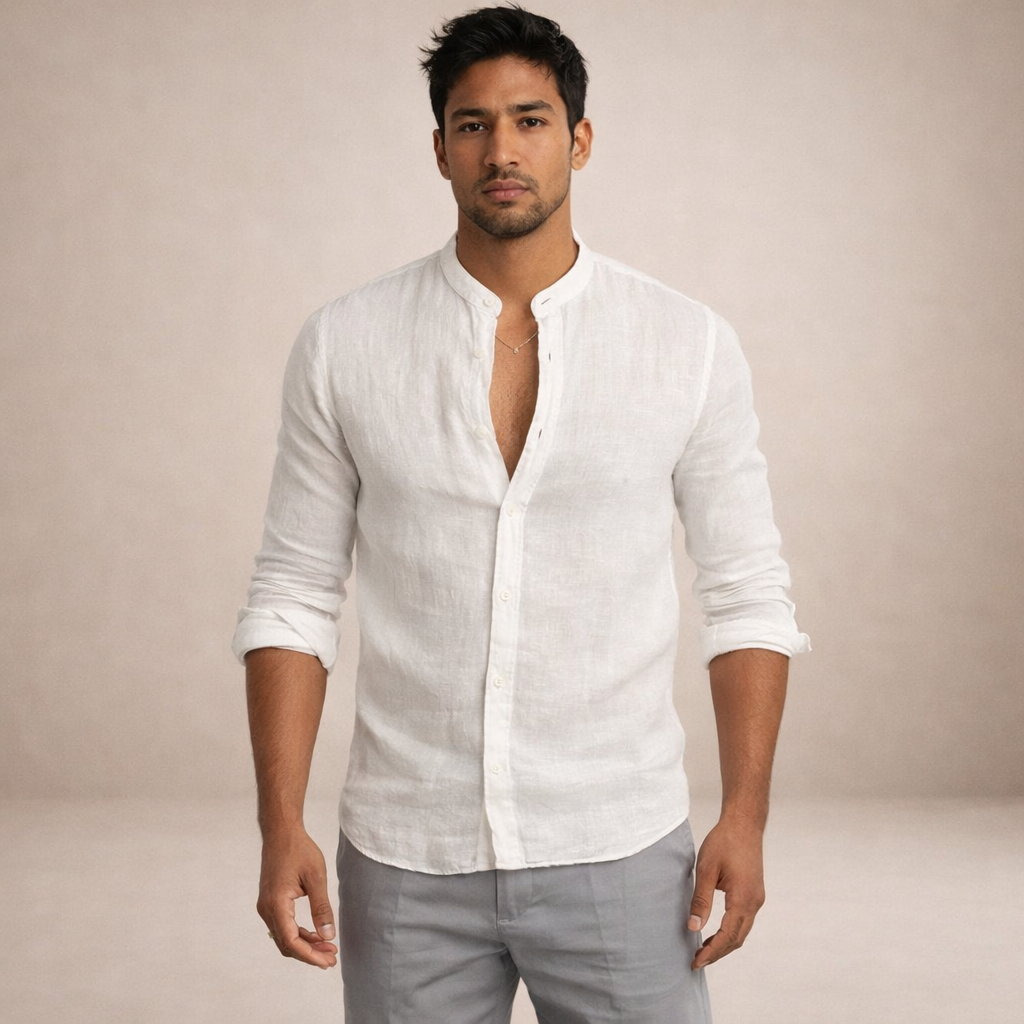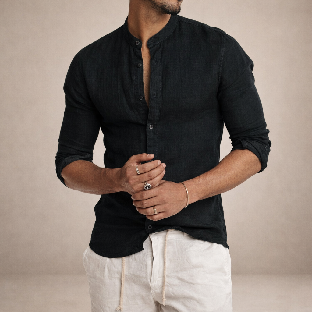 This men’s linen shirt offers a relaxed yet refined look, perfect for warm-weather dressing and effortless everyday style. Lightweight and breathable, it works equally well for casual outings, holiday wear, or polished off-duty occasions.