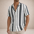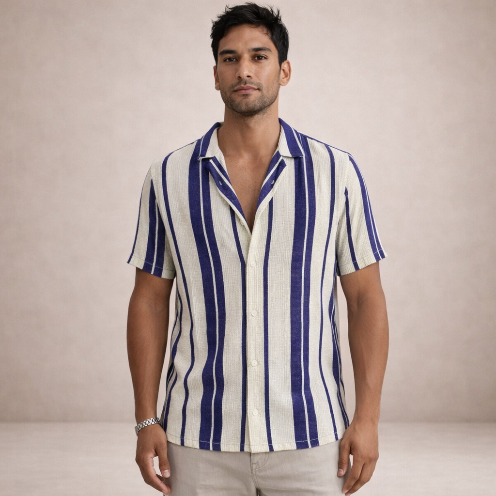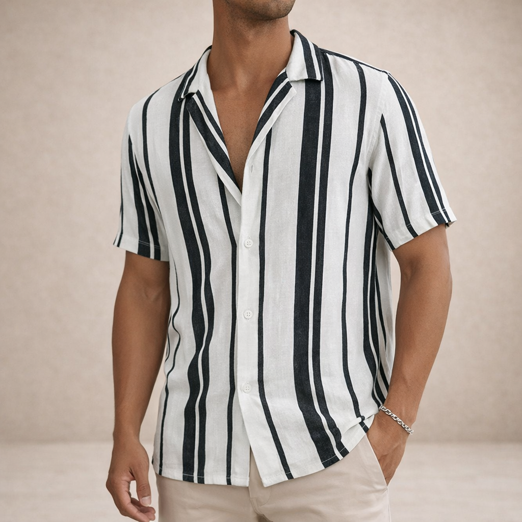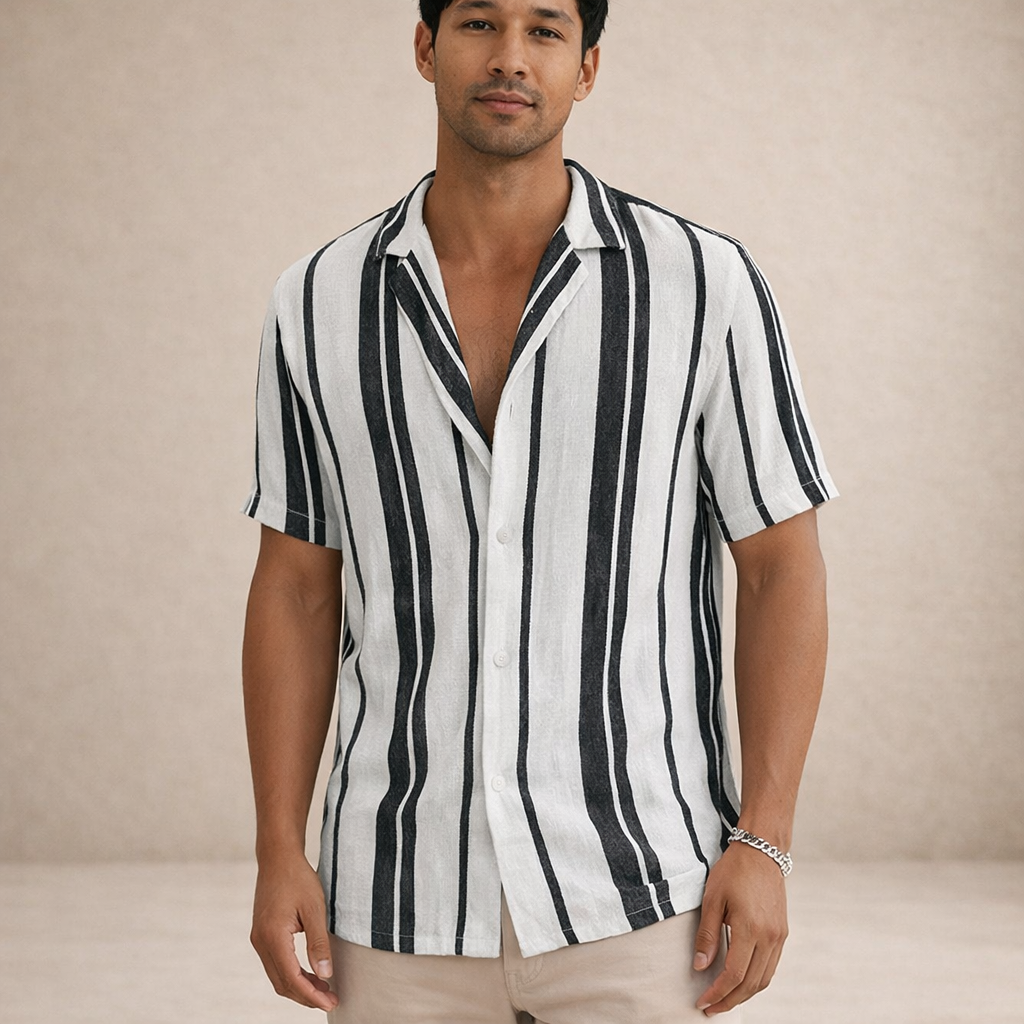 This men’s striped linen summer shirt captures a relaxed, vintage-inspired look with a refined modern edge. Lightweight and breathable, it’s perfect for warm-weather days, whether styled for holidays, coastal outings or casual city wear.