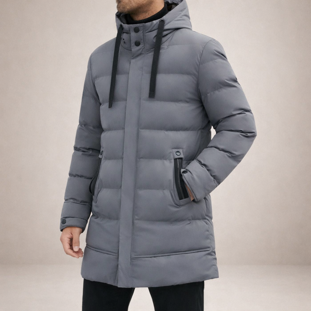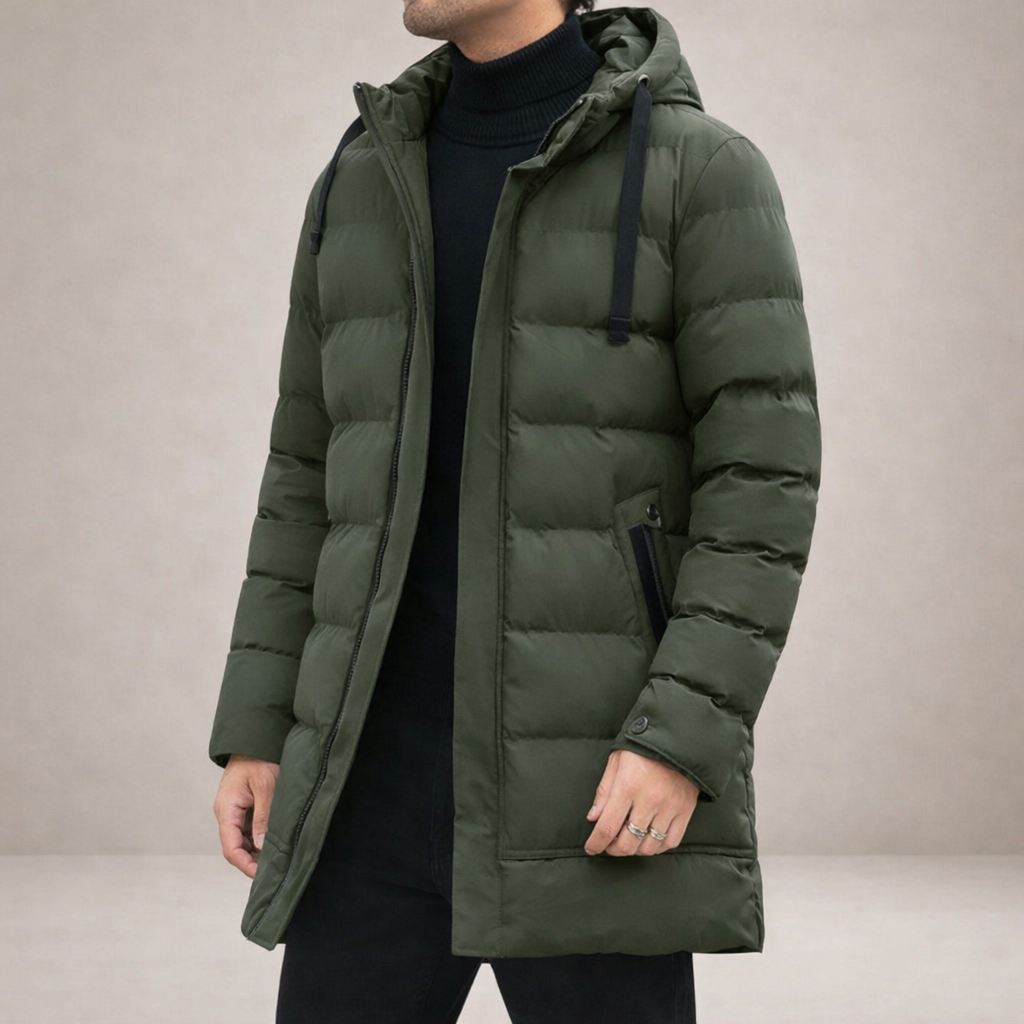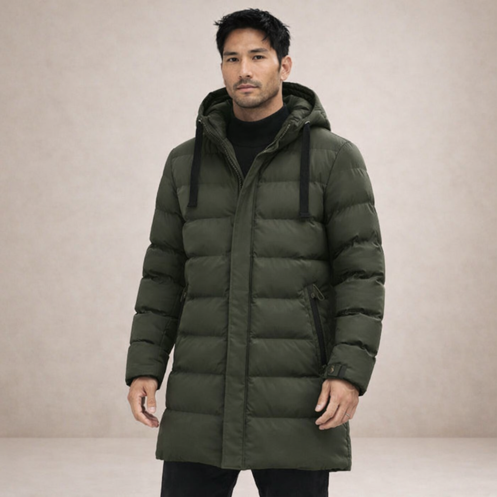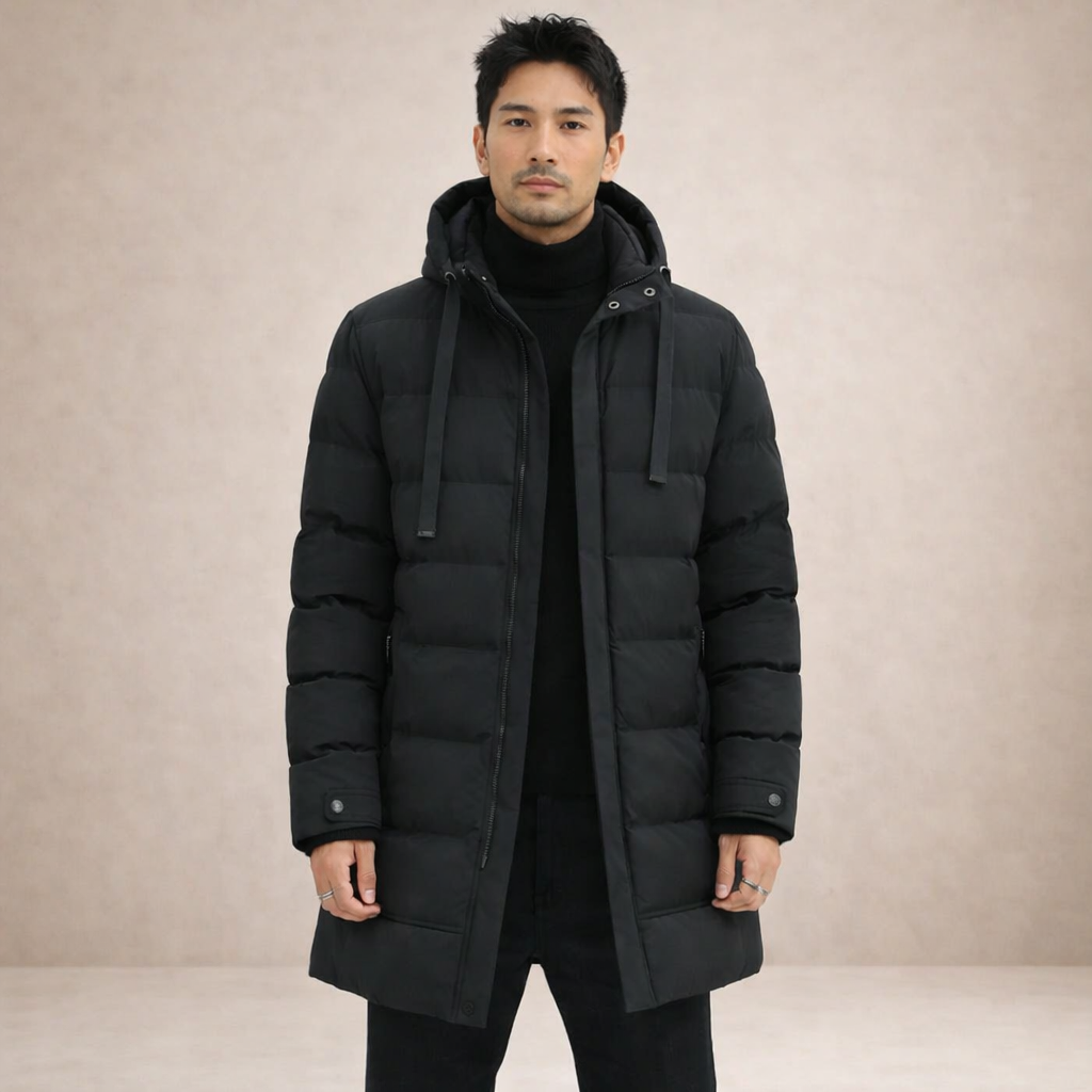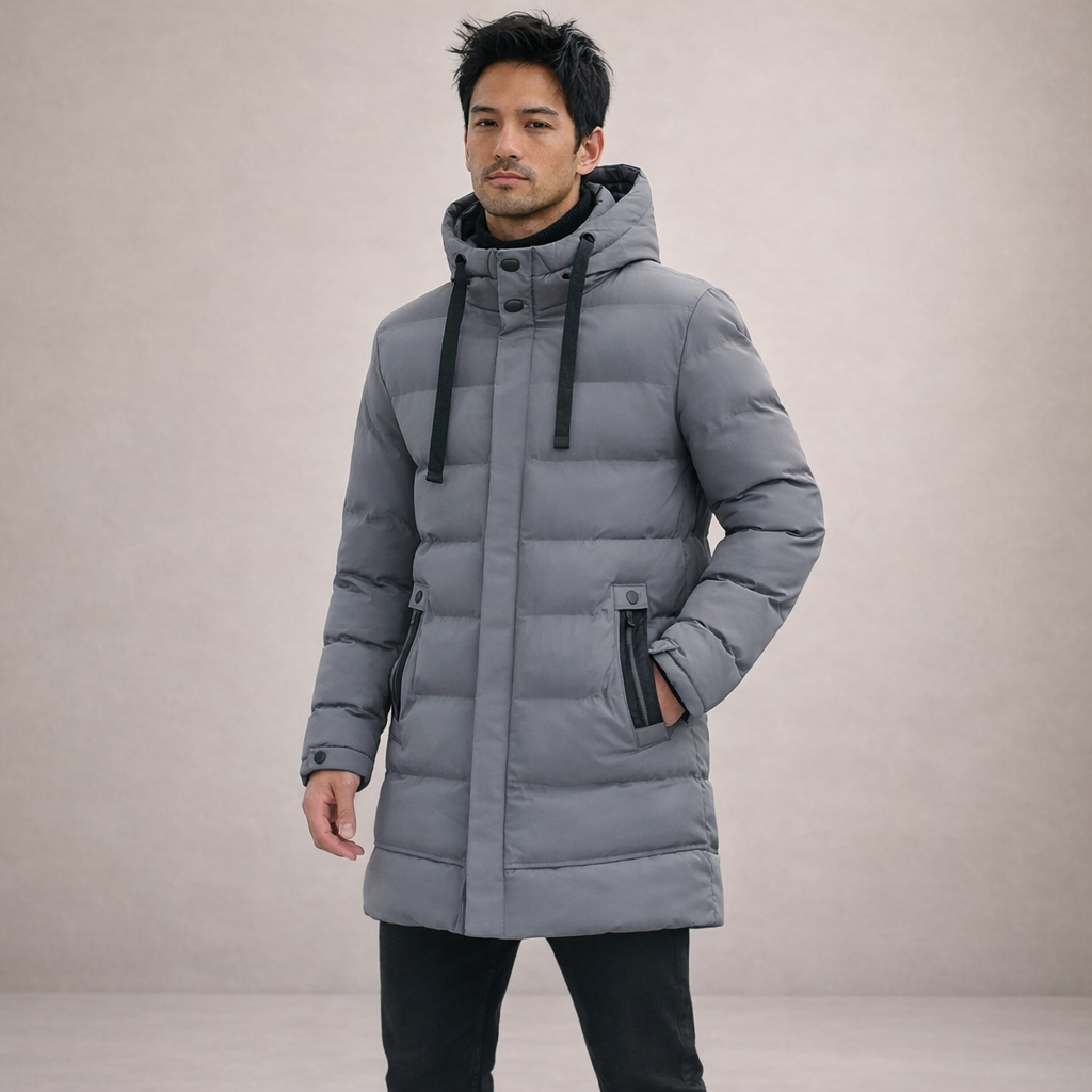 Men’s Longline Hooded Puffer Coat with Zip Pockets