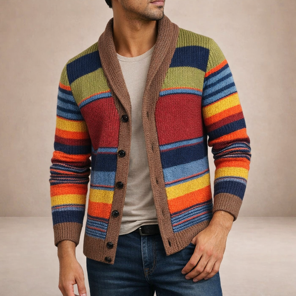 Men’s Multicolour Striped Knit Cardigan
