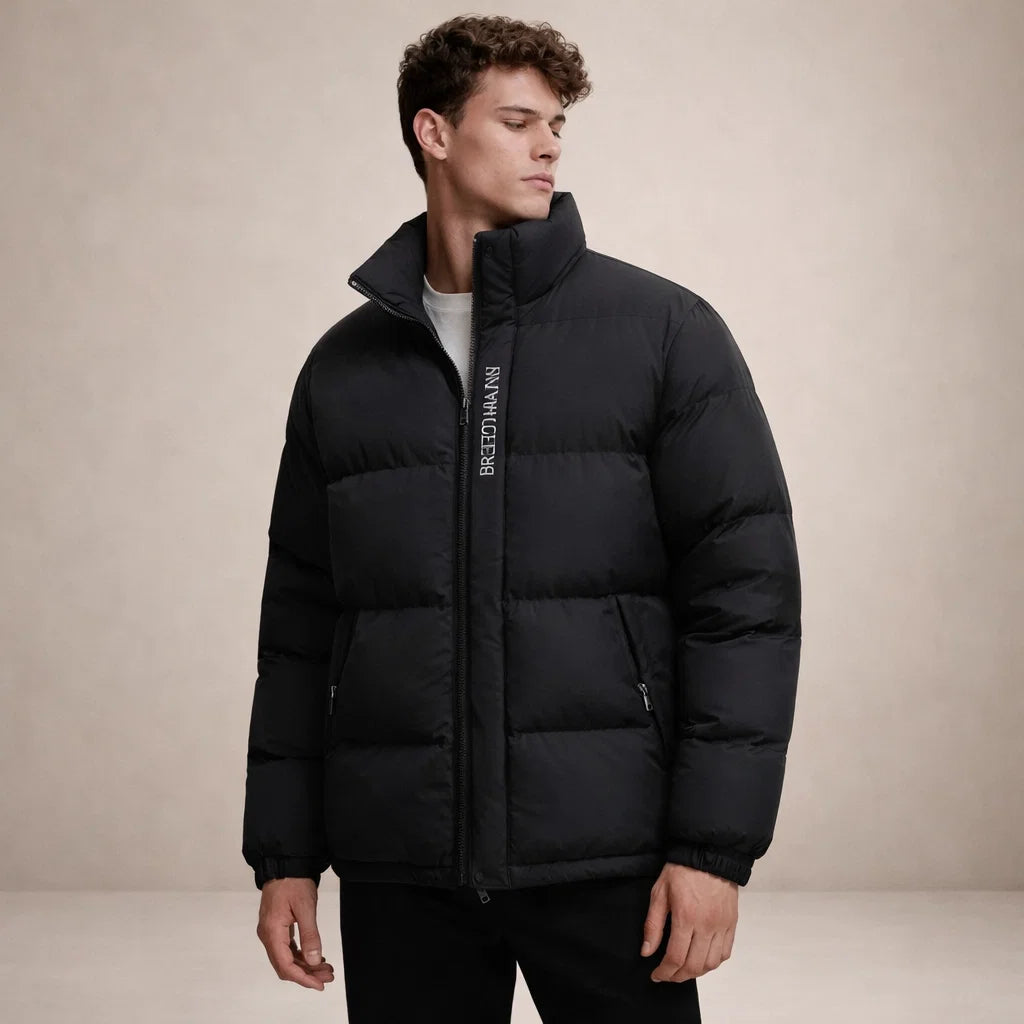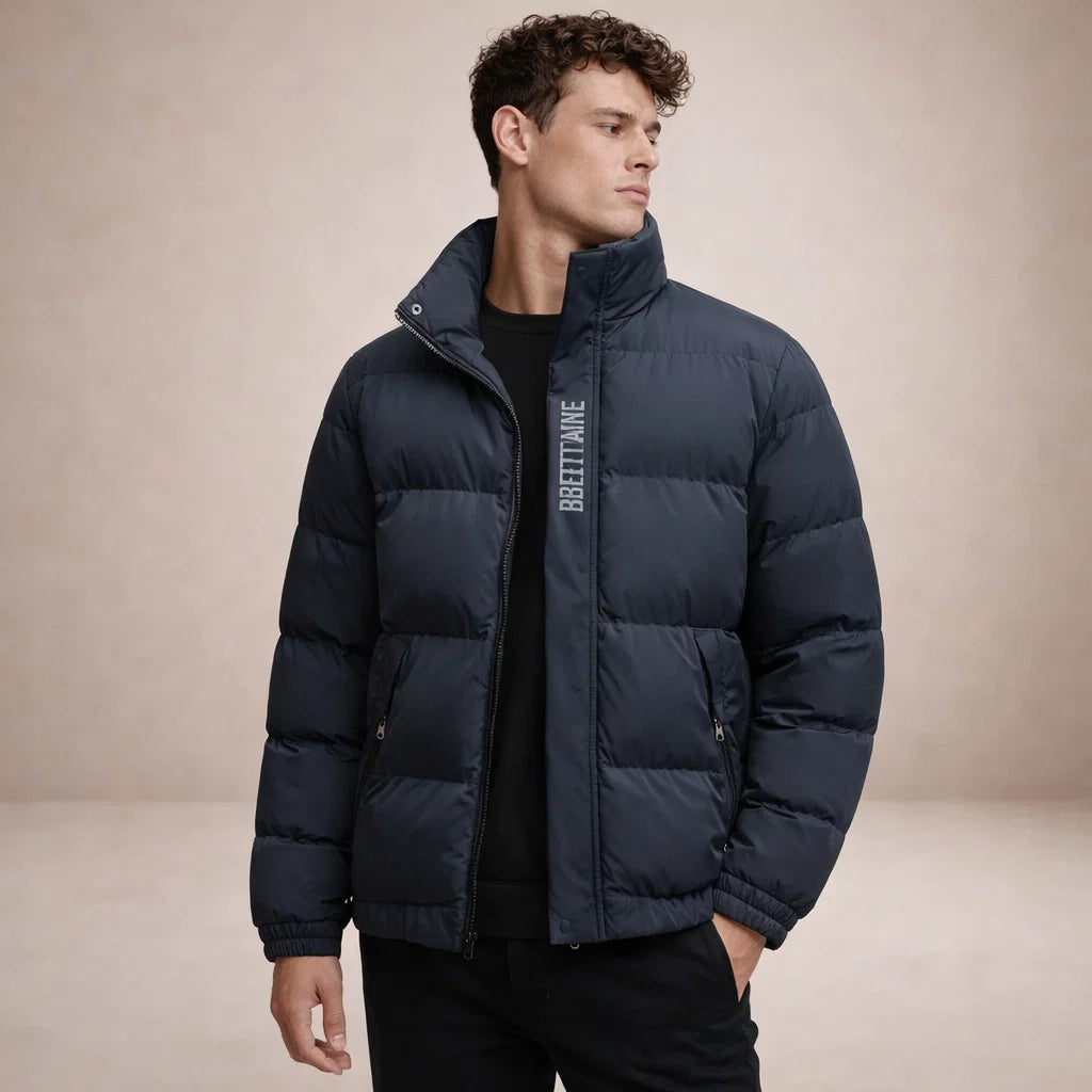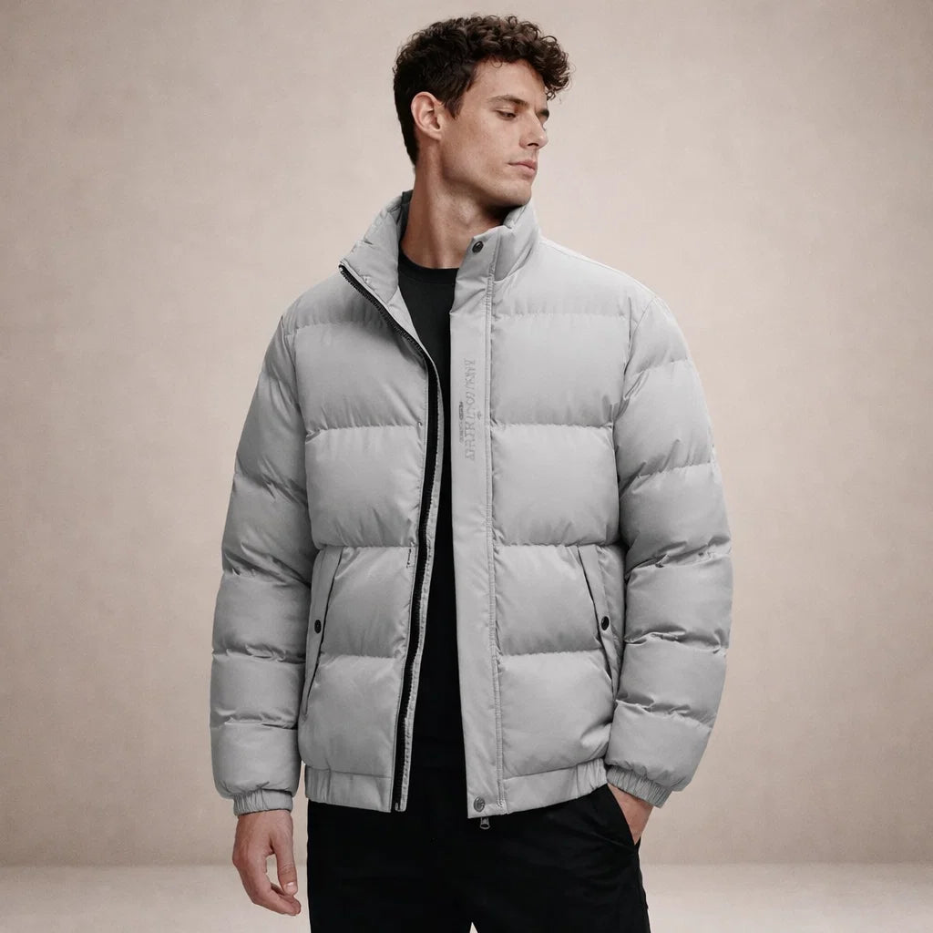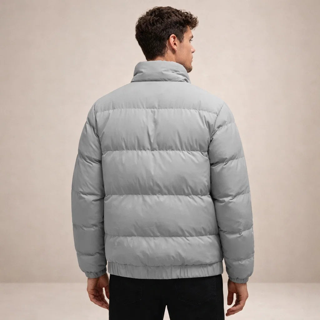 Men’s Padded Puffer Jacket with Stand Collar and Zip Front