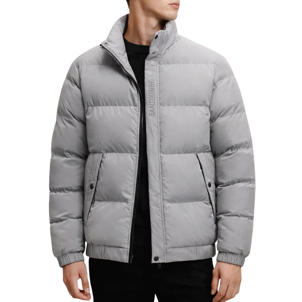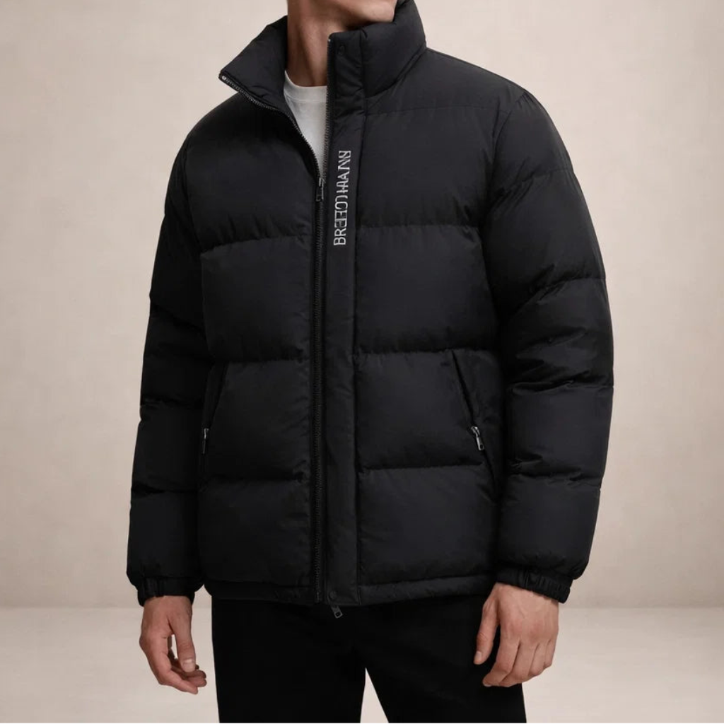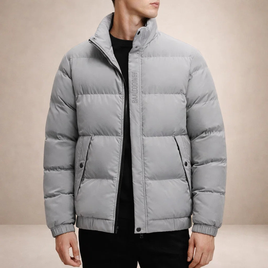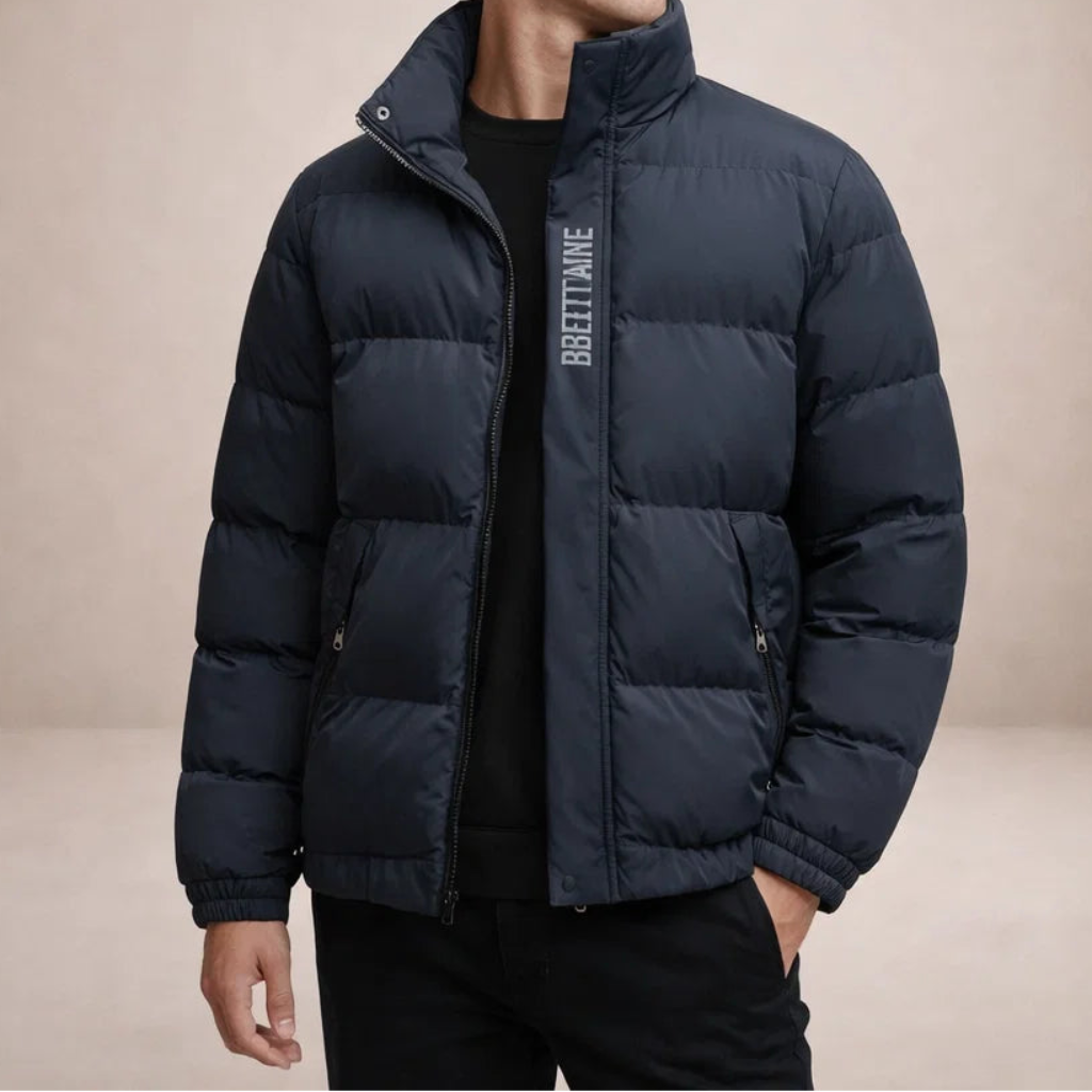 Men’s Padded Puffer Jacket with Stand Collar and Zip Front