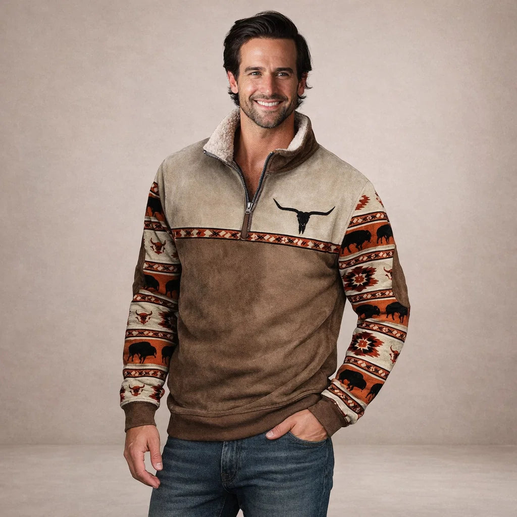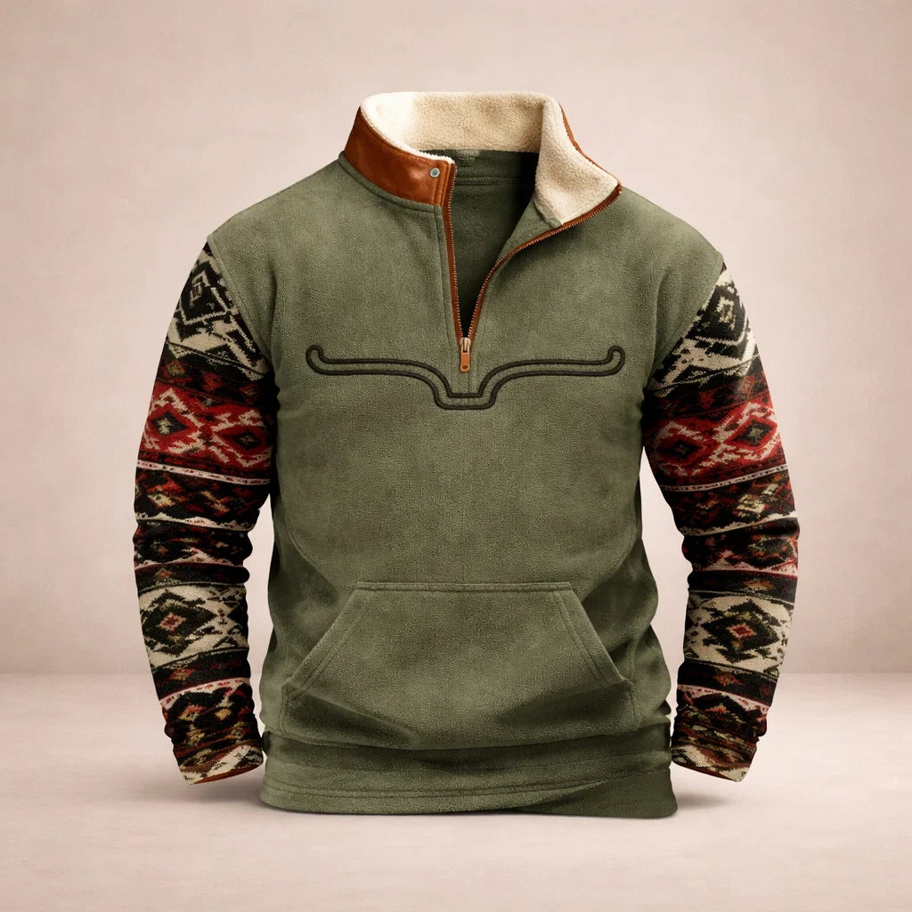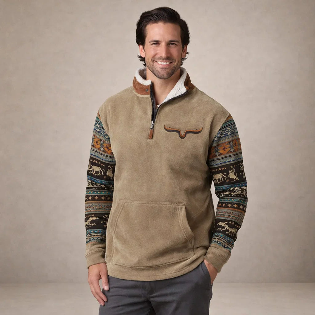 Men’s Quarter Zip Sweatshirt with Patterned Sleeves